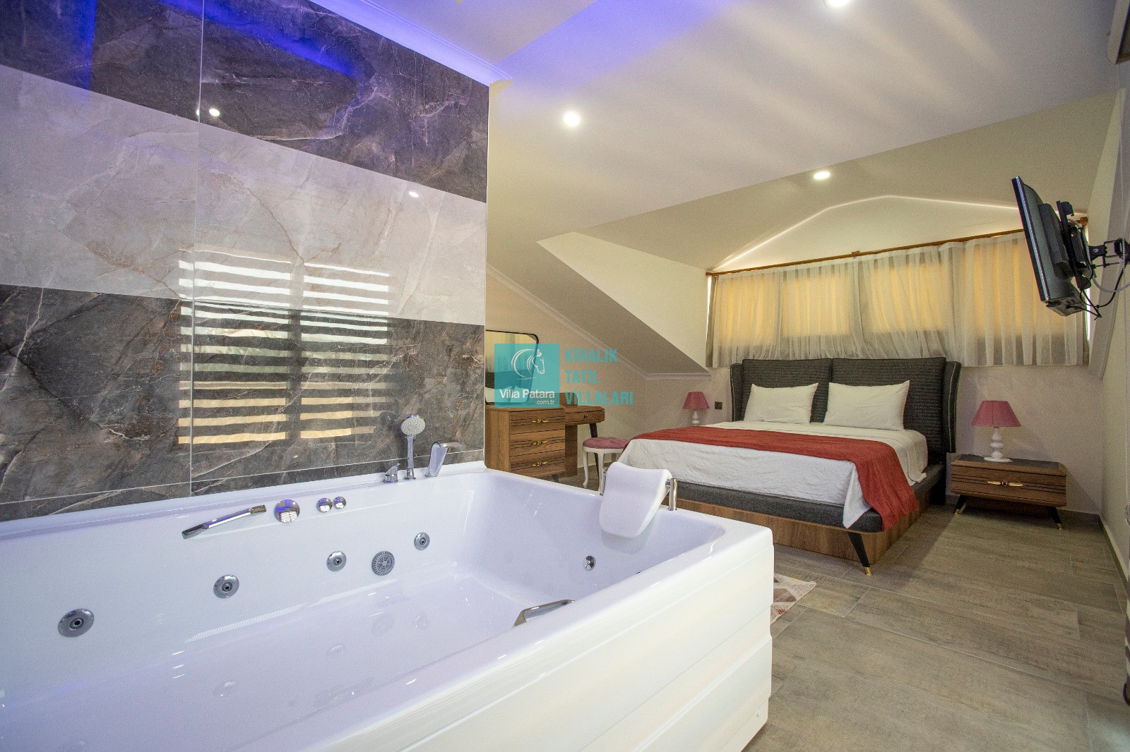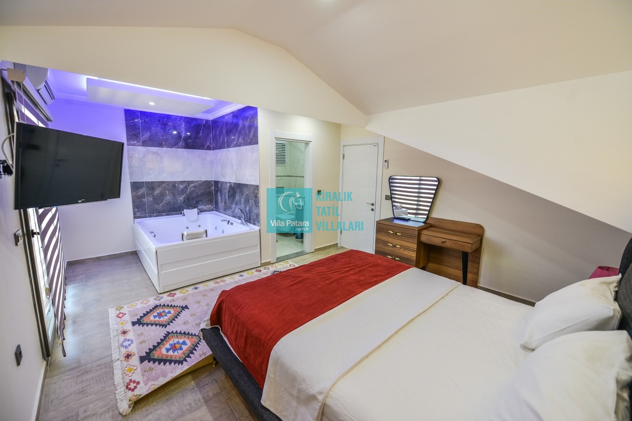 Yatak Odası 1: Çift kişilik yatak, klima, jakuzi, banyo WC