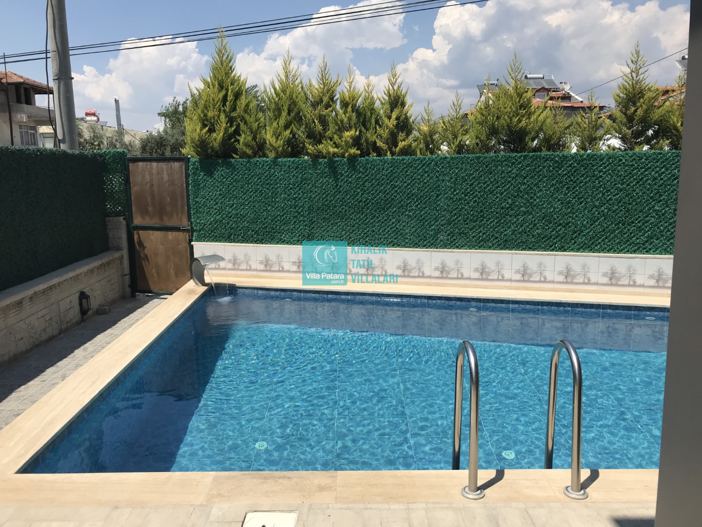 Havuz alanı çimçit perdeleme sistemi ile korunaklı hale getirilmiş olan villamız muhafazakar aileler için de uygundur.