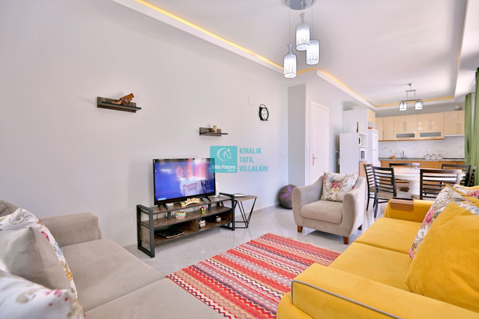 Salonumuzda oturma grubu, LCD TV, klima, sehpa bulunmaktadır. Havuz terasına çıkış yapılabilmektedir.