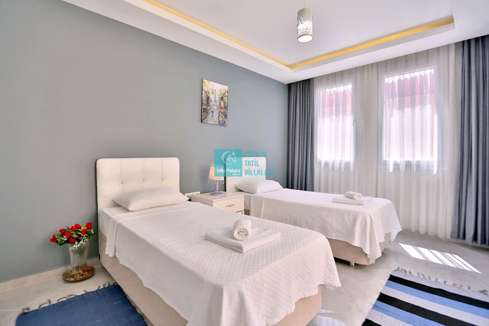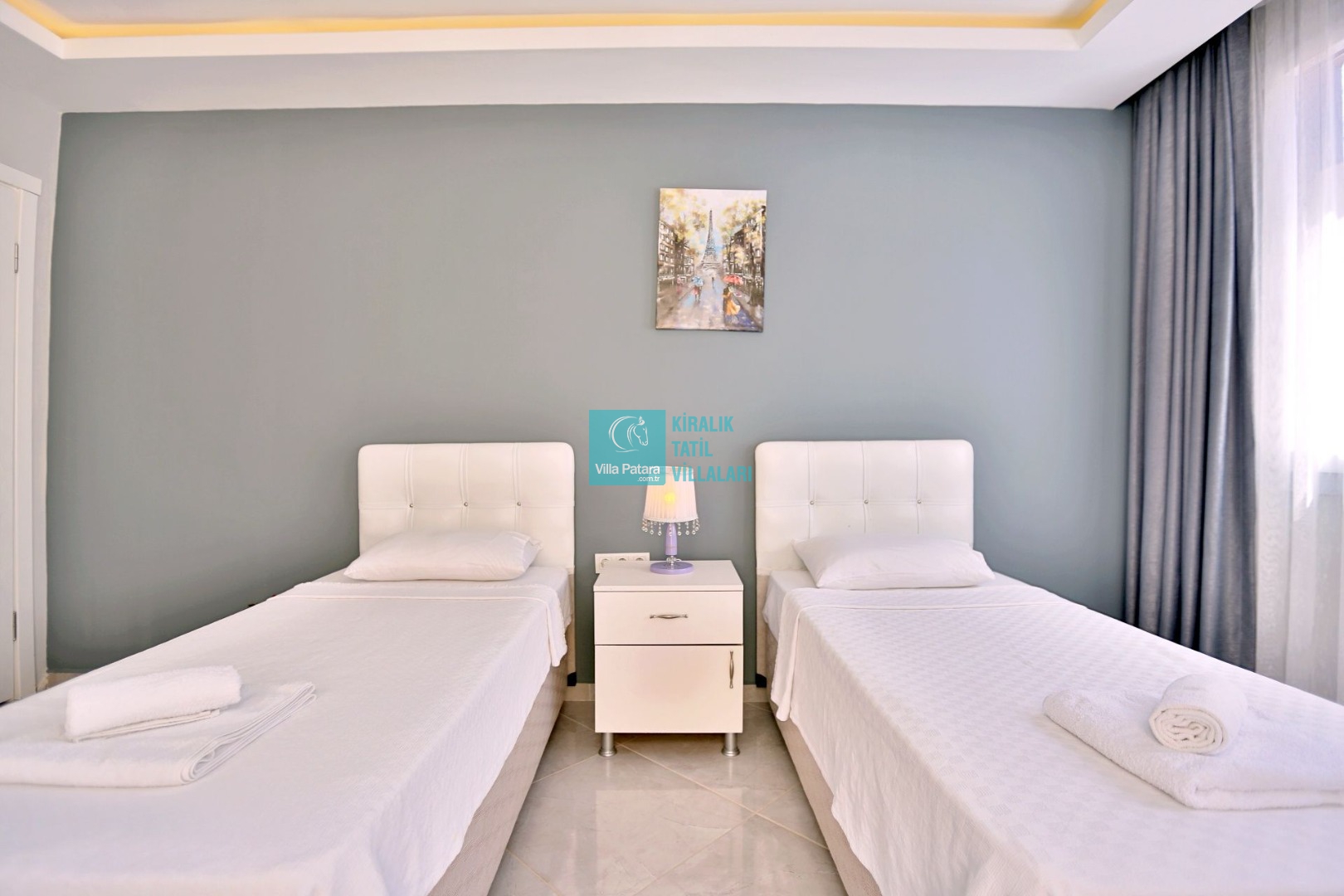 3.Yatak Odası: 2 adet tek kişilik yatak, elbise dolabı, komodin, makyaj masası bulunmaktadır. Ortak Banyo ve tuvalet bulunmaktadır.