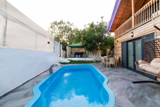 Geniş havuz alanı, konforlu oturma grubu ve özel barbekü alanına sahip olup iç mekanı da oldukça keyifli ve konforlu detaylar barındırmaktadır; oturma odası, donanımlı mutfağı; birinci yatak odasında çift kişilik yatak, ebeveyn banyosu, jakuzi; ikinci yatak odasında iki adet tek kişilik yatak bulunan tatil evi, doğada güvenle ve huzurla planladığınız Fethiye tatiline ev sahipliği yapacaktır.