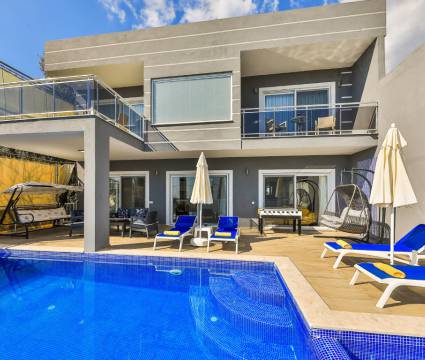 Villa, doğa manzarasını sunmak ile birlikte deniz manzarasına sahip olmasa da Kalkan kiralık villa seçenekleri içerisindeki en keyifli görselliklerden birine sahiptir. Villanın iç yapısına ve dış yapısına bakıldığında ayrı ayrı her noktasında modern mobilyalar, beyaz eşyalar, gündelik ev kullanım eşyaları, klima, televizyon, uydu bağlantısı, internet bağlantısı, çocuk oyun parkı ve bebek yatağı gibi tüm ihtiyaçlar yer almaktadır.