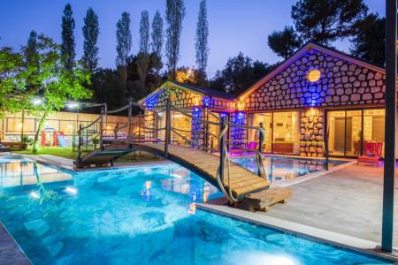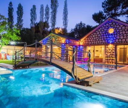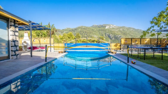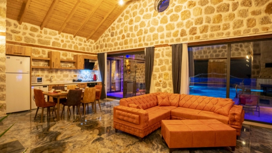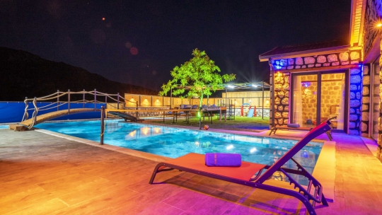 Villa Big Boss, Kalkan İslamlar’da bulunan taş mimarili ile özenle dekore edilmiş 2 yatak odalı, yeşillikler içinde özel muhafazakar havuzlu, masa tenisi, şömine, langırt, çocuklar için düşünülmüş oyun parkı, salıncak, mini futbol kalesi, küçük basket potası, oturma köşkü, tranbolin, masa tenisi, langırt, minyatür kale, havuzda voleybol filesi, bbq, tavla, satranç, domino, sauna ve oda içerisinde jakuzi bulunan villamız bölgenin modern villalarından olup muhafazakar balayı çiftine uygun, lüks Balayı Villasıdır. Villa Big Boss geniş bir bahçe içerisinde yapılmış olup etrafında herhangi bir yerleşim olmadığı için tam korunaklı bir havuza sahiptir.