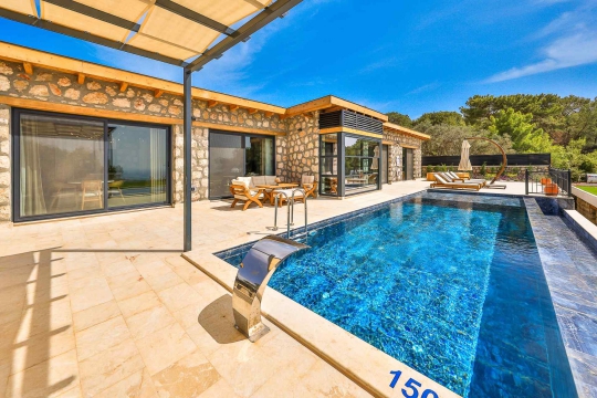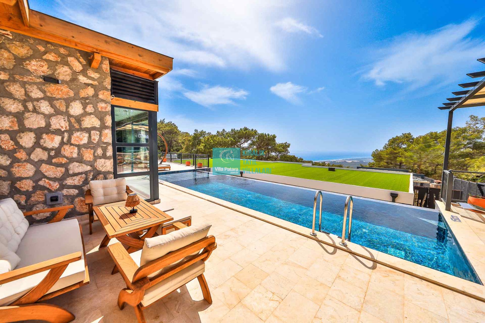 Villa Birce, Kalkan Patara bölgesinde konumlanan 2024 yılında yapımı tamamlanan kiralık villamızdır. Sakin bir konumda doğa içerisinde yer alan kiralık villamız, huzurlu bir tatil arayan misafirlerimiz ve balayı konaklamaları için çok özel bir seçenektir. Muhteşem Patara manzarasına sahip villamız, misafir memnuniyeti düşünülerek tasarlanmıştır. Villamız 5 villadan oluşan bir komplekste yer almaktadır. Her villanın önünde bulunan villadan havuz terasları gözükmemektedir.