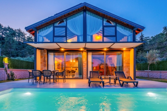 Villa Blue Heaven, Fethiye / Yanıklar’da bulunan 6 Kişilik kiralık tatil villasıdır. Bu eşsiz villa, unutulmaz bir tatil deneyimi sunmak için özenle tasarlanmıştır. Villa Blue Heaven'nın benzersiz özelliklerinden biri, ferah bir verandaya sahip olmasıdır. Bu güzel veranda, sizlere özgürce vakit geçirebileceğiniz geniş bir alan sunar. Günün yorgunluğunu atabileceğiniz, açık havada keyifli bir akşam yemeği yiyebileceğiniz veya sadece serin bir içecek eşliğinde dinlenebileceğiniz bir ortam sağlar.
