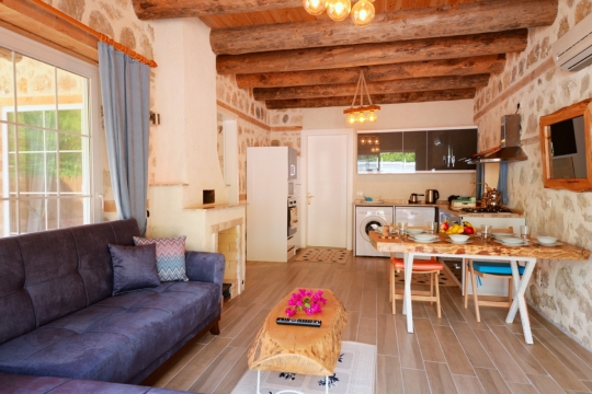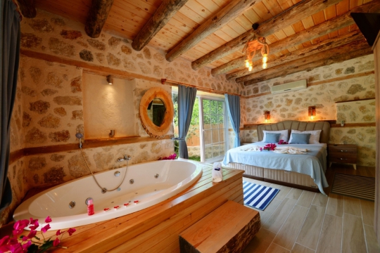 Kalkan mahallesinin İslamlar mevkiinde konumlandırılmıştır. Taş ve ahşabın buluşmasıyla otantik bir görünüme kavuşan villamız 2 kişi için dizayn edilmiştir. Balayı çiftlerinin konforu düşünülerek hazırlanmış olan villamızın havuz bahçe katı dışarıdan görünmeyecek şekilde muhafaza edilmiştir. Yatak odasında tüm günün yorgunluğunu atacağınız bir jakuzi yer almaktadır.