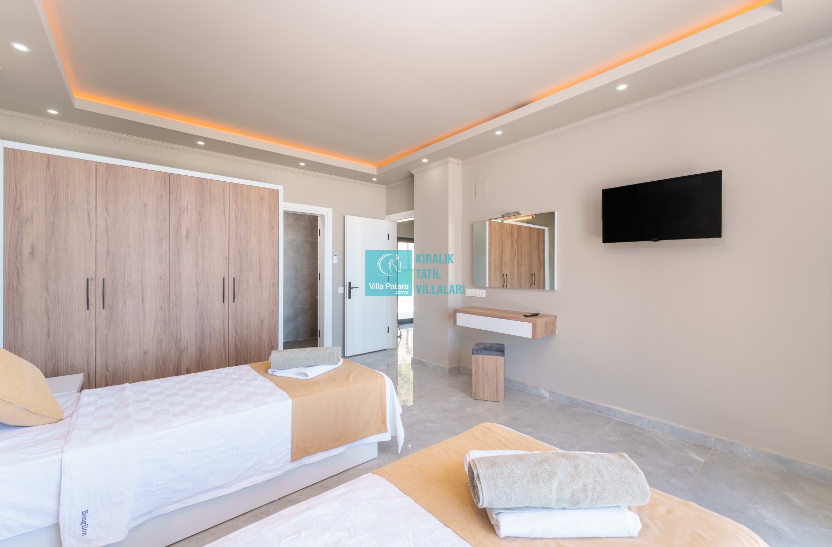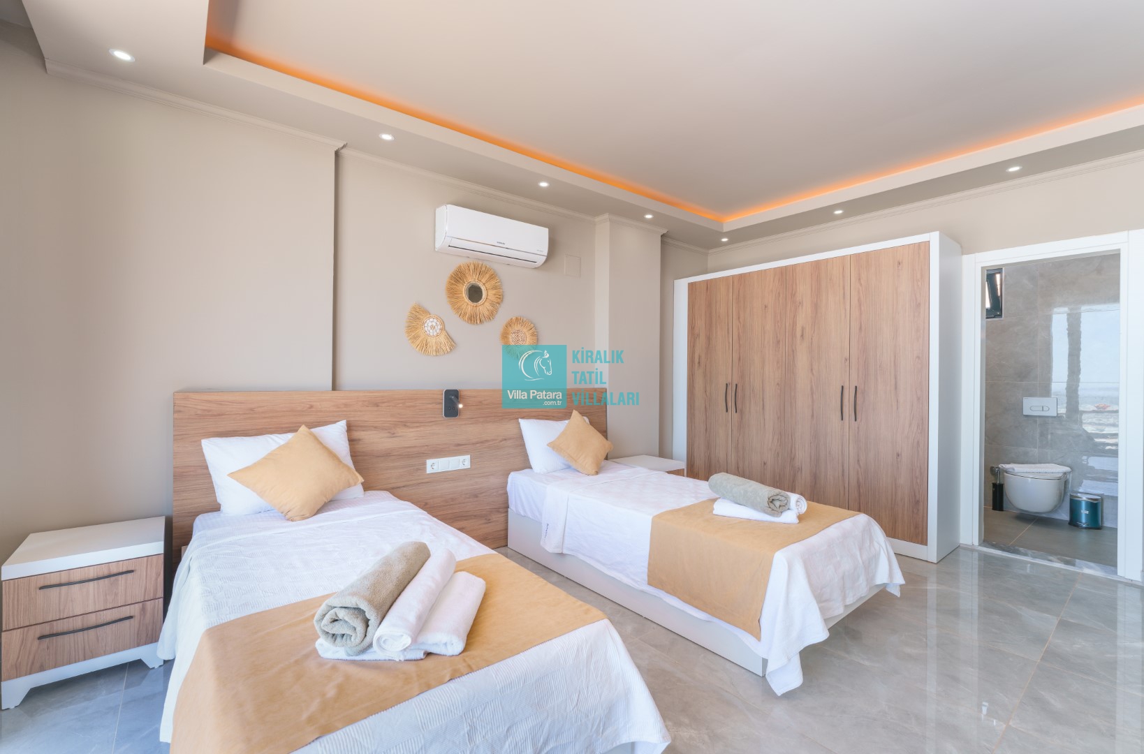 2. Yatak Odası : Suit Genç Odasıdır. 2 adet tek kişilik yatak, komodin, makyaj masası, elbise dolabı, klima, TV, WC&banyo bulunmaktadır.