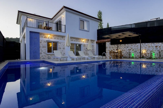 Villa Buğlem; doğa ile iç içe olabileceğiniz muhteşem bir yerleşim yeri olan Kalkan' ın İslamlar Köyü Mevkisi' nde konumlanmaktadır. Tatil evimiz; 2 suit yatak odalı olup; her oda içerisinde banyo ve tuvalet bulunmaktadır. Villamızın ebeveyn yatak odasında yorgunluğunuzu atabileceğiniz jakuzi yer almaktadır. Yazlığımızın yatak odaları balkonlu olup; balkonumuz sizin deniz manzarası karşısında keyifli zaman geçirebilmeniz için masa ve sandalyeler ile dekore edilmiştir. Modern Amerikan Mutfaklı muazzam bir salona hakim olan tatil evimizin iç mekanı lüks eşyalar ile dekore edilmiştir. Korunaklı özel yüzme havuzlu villamız özellikle mutaassıp ailelerimizin ve balayı çiftlerimizin tercih ettiği tatil mekanlarından bir diğeridir. Yazlığımıza yürüyüş mesafesinde alabalık restoranlarının olması siz değerli misafirlerimiz açısından iyi bir fırsattır. Masmavi gökyüzü altında su ve kuş seslerini duyabileceğiniz, yemyeşil bir doğa içerisinde yabancı gözlerden uzakta sadece sevdikleriniz ile birlikte keyifli bir tatil geçirmeyi planlayanlara Villa Buğlem' i tavsiye ediyoruz.