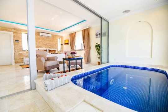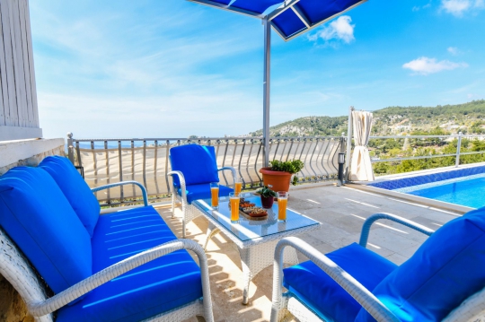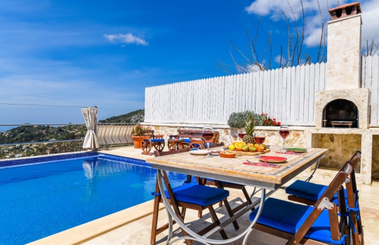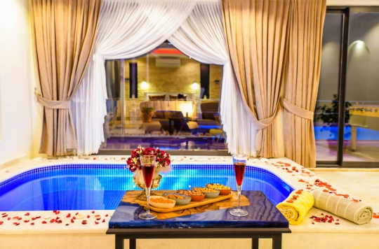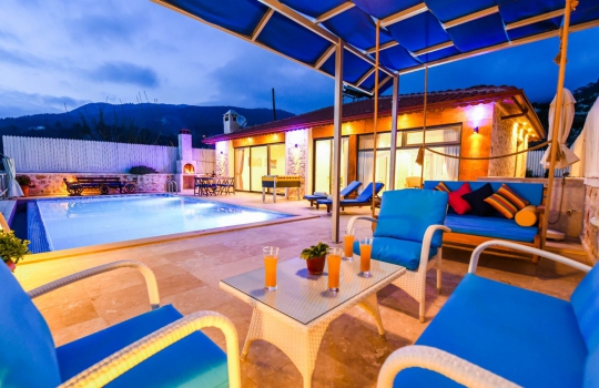 Balayı için otellerden, şehirden ve insanlardan uzakta bir tatil arayışında iseniz Villa Büşra’yı arıyorsunuz. Büyük yüzme havuzu korunaklı olan bu villamızın bir de yatak odasında ısıtmalı havuzu mevcuttur. İç dekorasyonu ve mobilyaları sizlere evinizin rahatlığını aratmazken, en özel anlarınızda size kendinizi özel hissettirecek biçimde tasarlanmıştır. Yeşile ve doğaya olan özleminizi giderebileceğiniz bir manzaraya sahip olan bir villadır. Civarındaki market ve restoranlara oldukça yakın mesafedeki bu villa şehir merkezine yaklaşık 9 km uzaklıktadır. İster odanızdaki ısıtmalı kapalı havuzunda ister dışarıdaki yüzme havuzunda yüzerken gün batımının o cezbedici güzelliğini izleyebileceğiniz ve doğanın tadını çıkarabileceğiniz bir tatil için Kalkan İslamlar Köyü’ndeki Villa Büşra sizleri bekliyor.