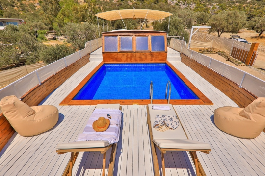 Villa Calypso Yalı mevkisinde bulunan Aykırı Tasarımlı Gemi kompsetiyle Titanik anısını yaşayabilirsiniz kiralık balayı villası, şehrin gürültüsünden ve kirliliğinden uzak doğa içinde keyifli bir tatil isteyen çiftlerimiz ve ailelerimiz için oldukça uygun bir seçenektir. Balayı villaları kategorisinde yer alan villamız, 1 yatak odası ile 2 kişilik konaklama kapasitesine sahiptir. Havuz Geminin Güvertesinde olduğundan kısmen korunaklıdır. Villa Calypso, deniz manzarasına sahiptir. Bütün detayların düşünülmüş olduğu jakuzili villamızda, unutulmaz bir tatil sizleri bekliyor.