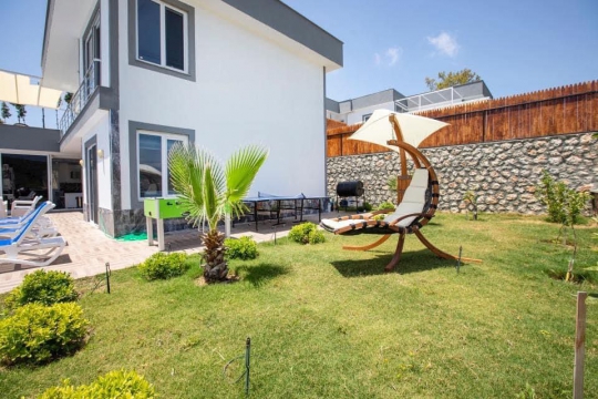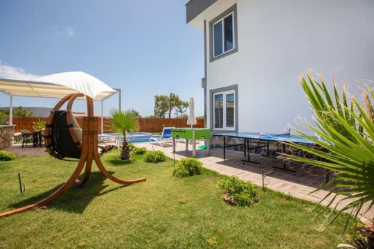 Terasında özel yüzme havuzu, şezlonglar, güneş şemsiyeleri, masa ve sandalyeler, mangal bulunmaktadır.