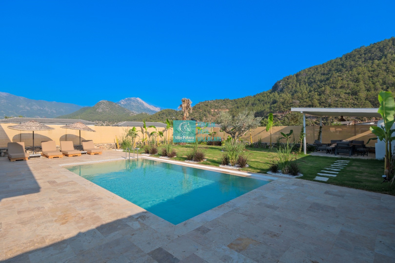 Villa Cesur, modern ve şık bir iç mekana sahiptir. Tatilcilerin ihtiyaçlarını karşılamak için özenle döşenmiş geniş yaşam alanları sunar. Jakuzi, tatilcilerin rahatlaması ve keyifli anlar yaşaması için mükemmel bir seçenektir. Korunaklı havuz ise özel bir atmosferde serinlemek ve eğlenmek için ideal bir alan sunar. Fethiye Kayaköy’de bulunan Villa Cesur'un geniş verandası, harika manzaralar eşliğinde dinlenme ve keyifli zaman geçirme imkanı sunar. Bu alan, tatilcilerin güneşin tadını çıkarmalarına ve açık havada keyifli anlar yaşamalarına olanak tanır. Fethiye'de kiralık villa seçenekleri arasında yer alan Villa Cesur, lüks villaların en gözde tercihlerinden biridir. Garanti Villam güvencesiyle sunulan bu tatil villası, tatilcilerin konforlu ve unutulmaz bir tatil deneyimi yaşamalarını sağlar. Fethiye'nin eşsiz güzelliklerini keşfetmek ve rüya gibi bir tatil geçirmek isteyenler için ideal bir seçenektir.