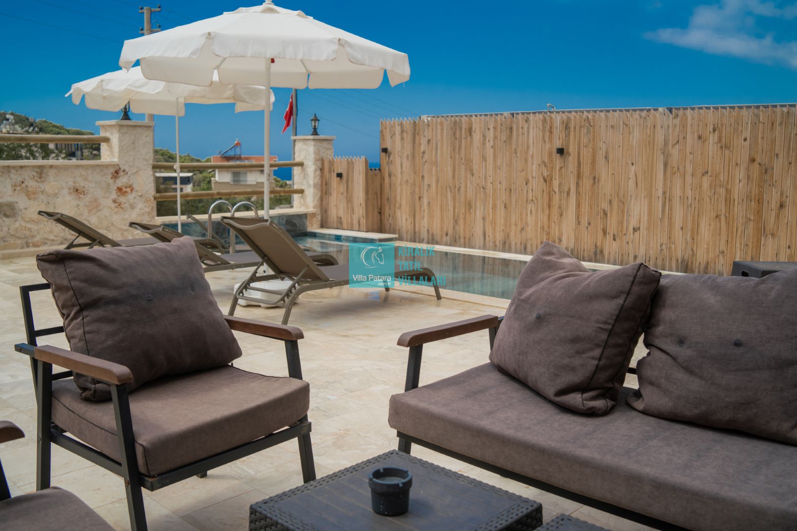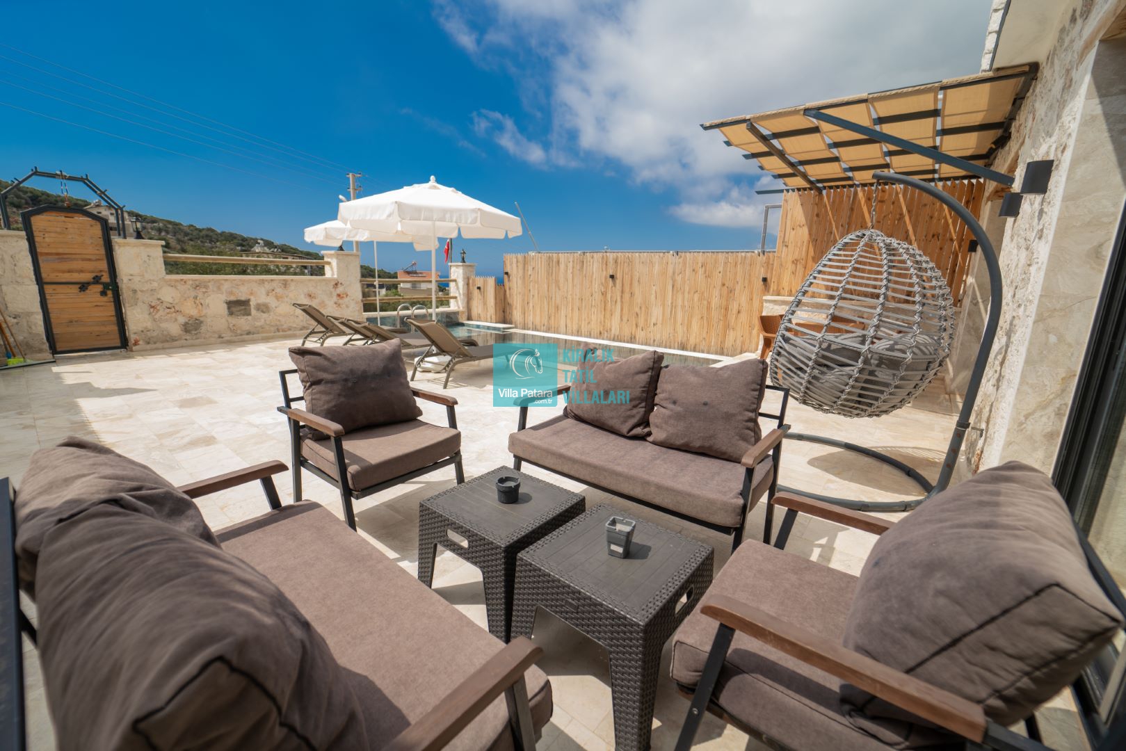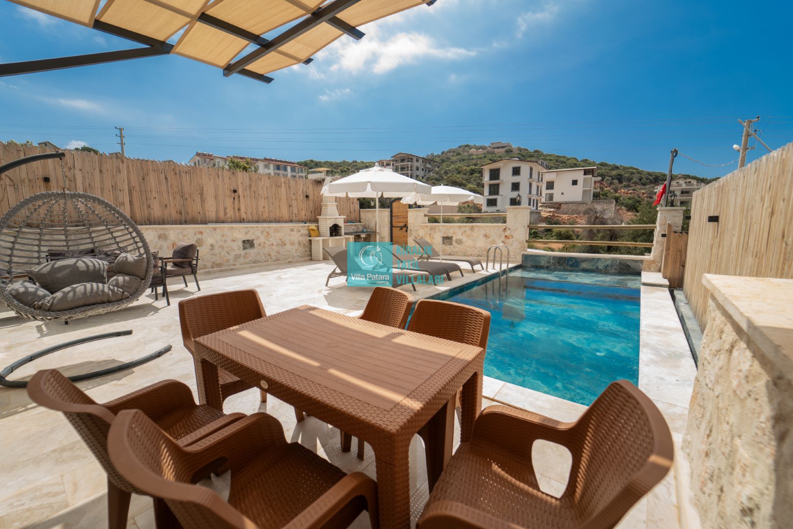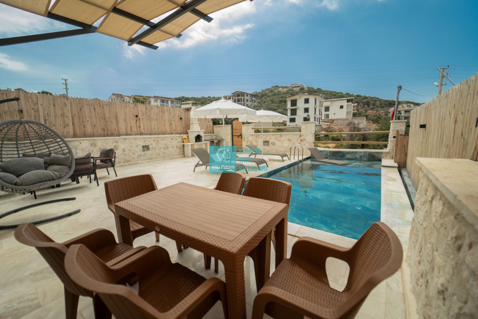 Havuz ve Bahçe terasımızda; Şezlong, güneşlenme şemsiyesi, barbekü, yemek masası ve sandalyeleri bulunmaktadır.