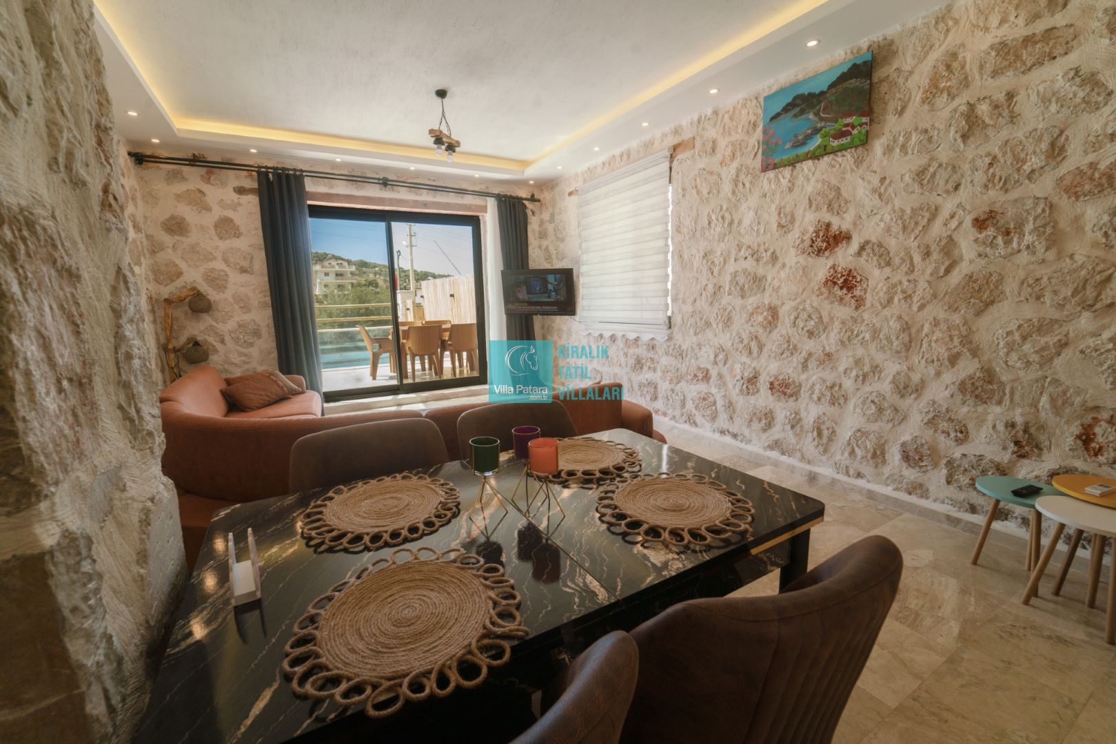 Salonumuzda rahat, kaliteli, oturma gurubu, klima, LCD ve uydu alıcısı, yemek masası ve sandalyeleri bulunmaktadır.
