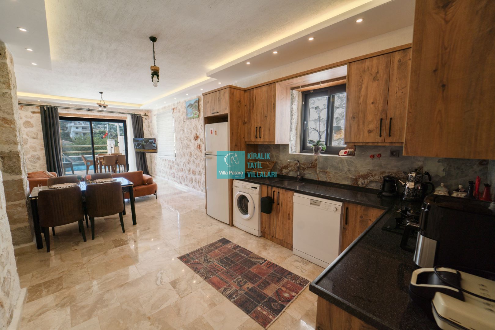 Lüks ve geniş bir mutfağa sahiptir. Buzdolabı, bulaşık makinası, çamaşır makinesi, fırın, ocak seti, kettle/çay makinesi, yemek takımı, tava, tencereler, çatal, bıçak vb. mutfağımızda her şey sizler için düşünülmüştür.