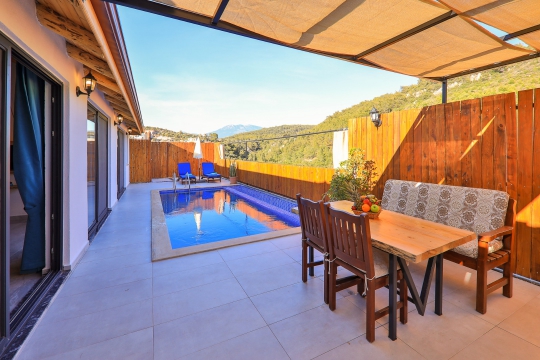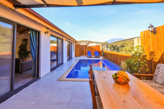 Kalkan Patara bölgesinde, şehrin gürültüsünden ve stresinden uzakta, doğa manzarası eşliğinde tatilini lüks ve ayrıcalıklı yaşamak isteyen siz değerli misafirlerimize sunmaktayız. Kiralık Villa Delfin, muhafazakar villalar, balayı villaları, doğa manzaralı villalar ve jakuzili villalar kategorisinde yer alan villamızın, doğa manzarasında tatil yapmanın tadına varacaksınız. Kiralık havuzu korunaklı Villa Delfin Lila, balayı çiftlerimiz için unutulmaz bir tatil fırsatı sunuyor. Doğayı hissettiren konumu, tertemiz havası ve gözlerden uzakta kalan yapısı ile sizlere özgür bir tatil ortamı sunuyor. Doğa ile başbaşa kalabileceğiniz binamız 2021 yılı içerisinde inşası tamamlanmış olup; oldukça lüks ve konforlu bir şekilde dekore edilmiştir. Yepyeni dizaynı ile huzur veren villamızın 1 yatak odası bulunmaktadır ve yılın yorgunluğunu ve stresini atabileceğiniz jakuzi mevcuttur.