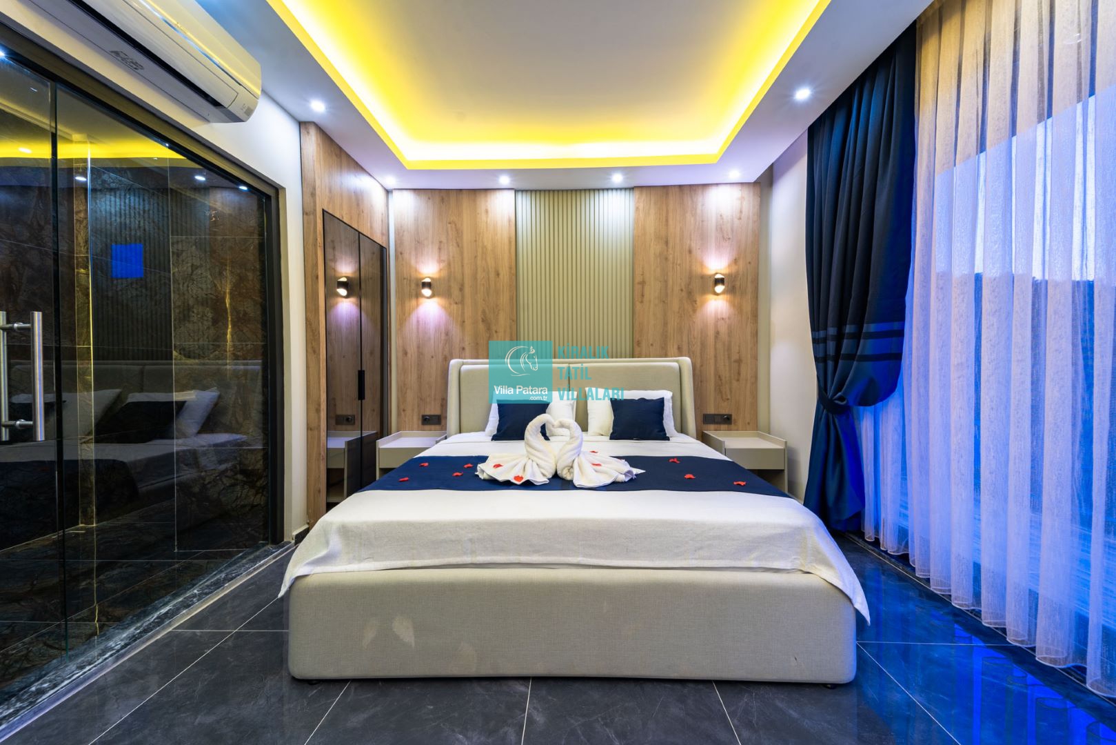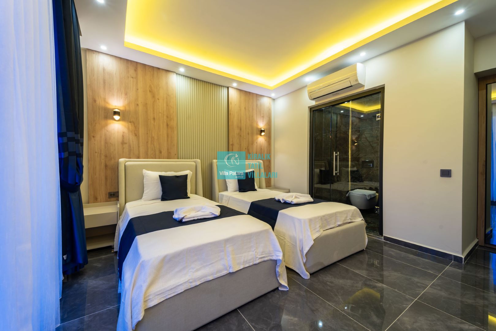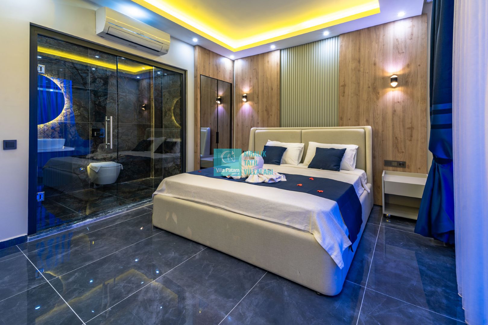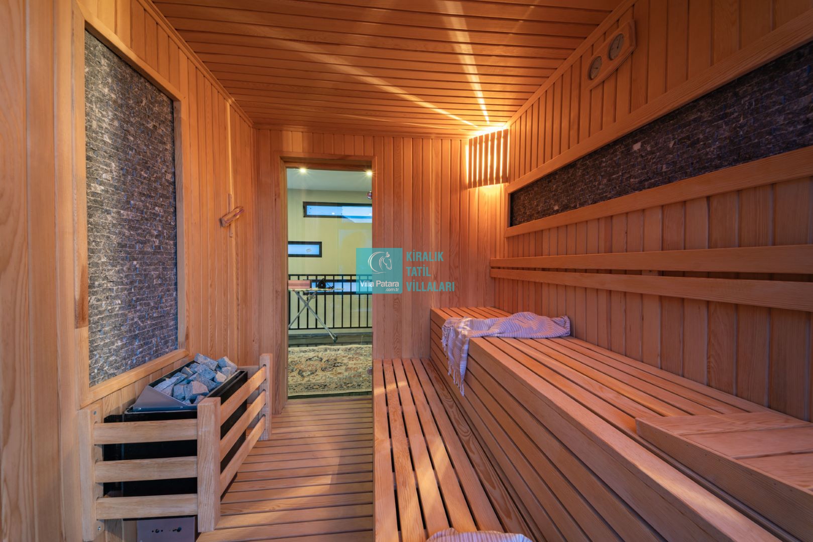 Villamızın iç tasarımı, modern ve konforlu bir yaşam alanı sunar. Yatak odaları geniş ve ferah olup dinlenmeniz için gereken tüm imkanları sağlar. Hamam ve sauna ise sizi şımartacak ve vücudunuzu gevşetecektir. Ayrıca villanın geniş ve güzel peyzajlı bahçesi, doğayla iç içe olmanızı sağlar ve dinlendirici bir atmosfer sunar.