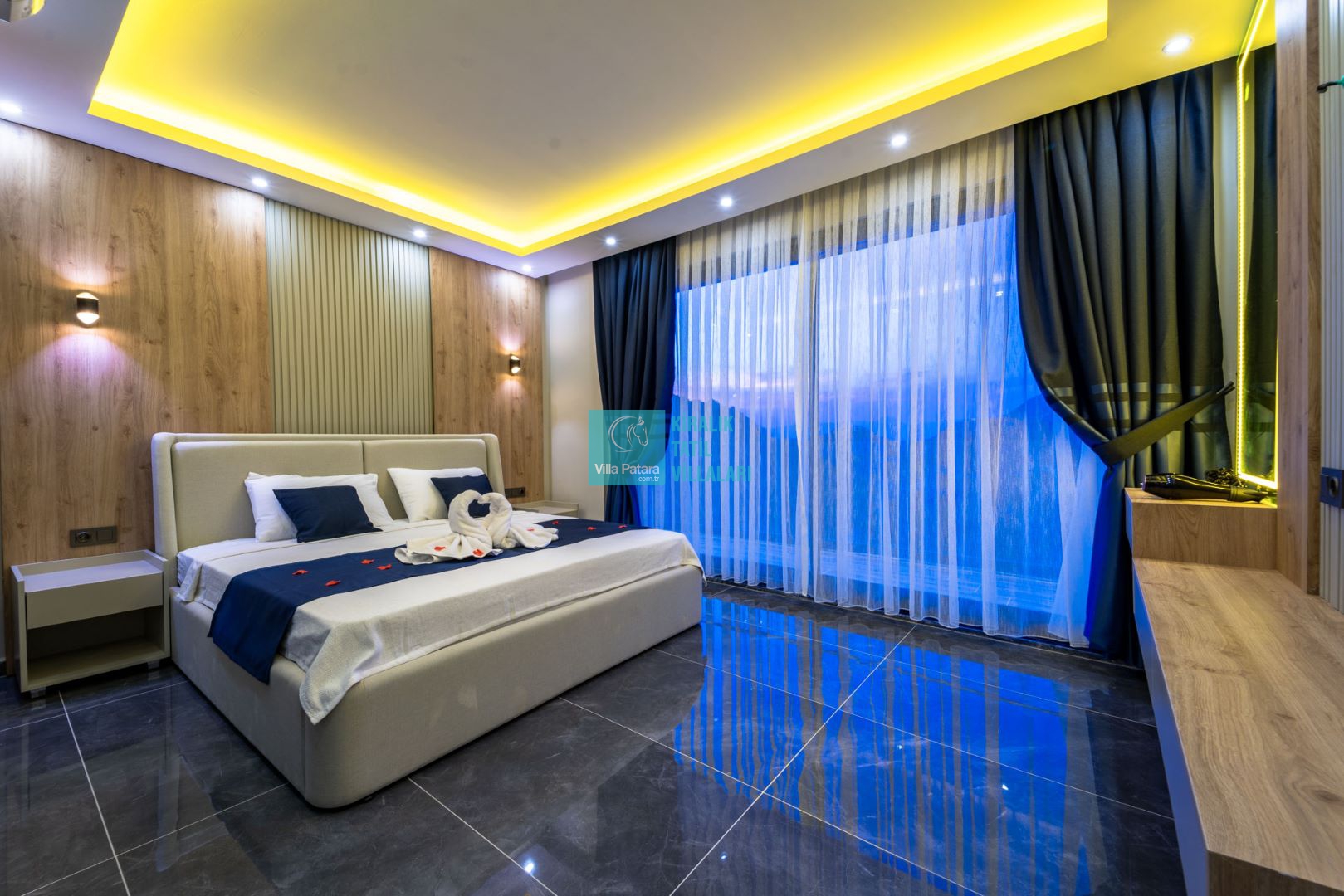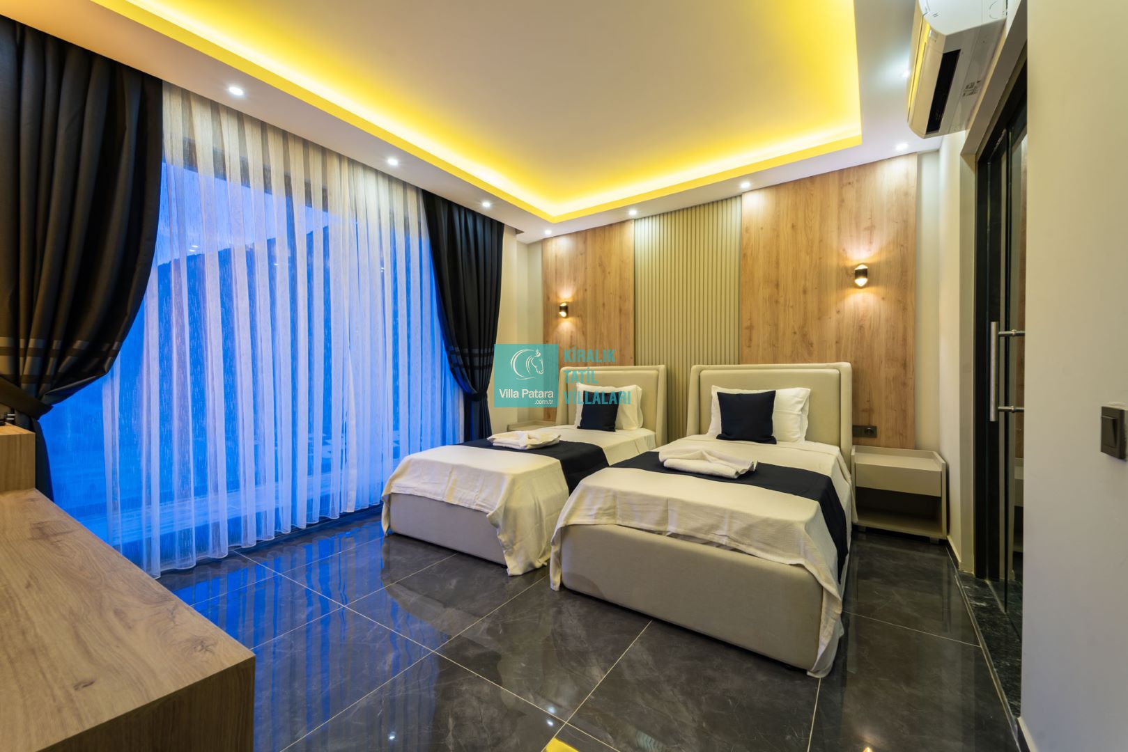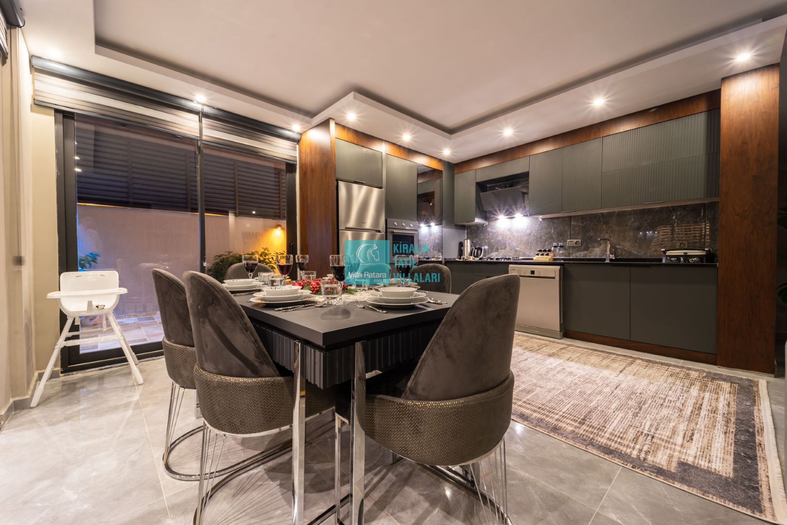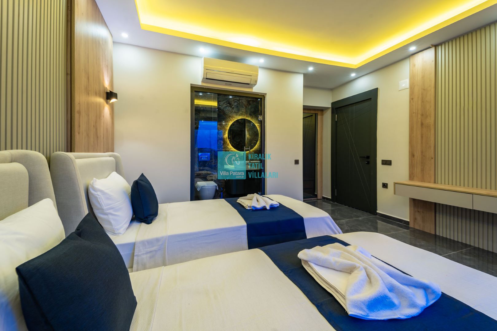 Villamızın iç tasarımı, modern ve konforlu bir yaşam alanı sunar. Yatak odaları geniş ve ferah olup dinlenmeniz için gereken tüm imkanları sağlar. Hamam ve sauna ise sizi şımartacak ve vücudunuzu gevşetecektir. Ayrıca villanın geniş ve güzel peyzajlı bahçesi, doğayla iç içe olmanızı sağlar ve dinlendirici bir atmosfer sunar.