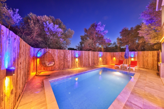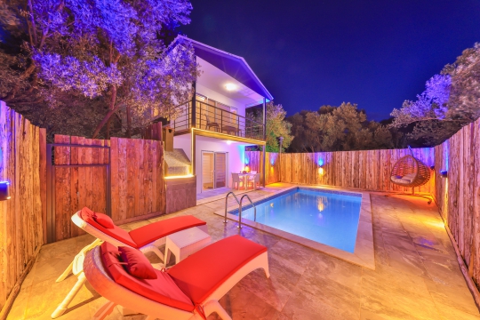 Kalkan Patara mevkisinde bulunan kiralık balayı villası, sessizliğin, huzurun hakim olduğu bir villada tatil isteyen çiftlerimiz için oldukça uygun bir seçenektir. Balayı villaları kategorisinde yer alan villamız, 1 yatak odası ile 2 kişilik konaklama kapasitesine sahiptir. Havuzu yarı korunaklı Villa Doğa Patara, mahremiyete önem veren çiftlerimiz için huzur dolu bir tatil fırsatı sunuyor. Ayrıca yatak odasında misafirlerimizin rahatlaması için 2 kişilik jakuzi konforu da sağlamaktadır.