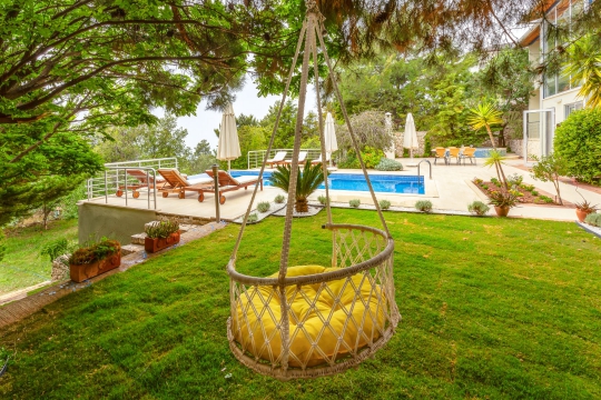 Detayları : 6 Kişilik masa ve sandalye, Şezlong, Barbekü, Güneş şemsiyesi, Özel yüzme havuzu, Çocuk havuzu