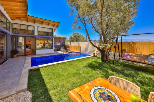 Bahçe içerisinde özel yüzme havuzu, şezlonglar, güneş şemsiyesi, salıncak, mangal bulunmaktadır.