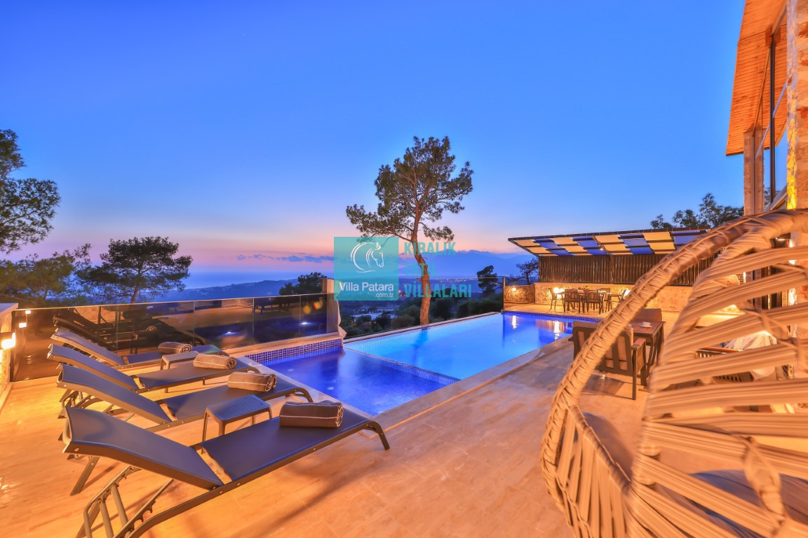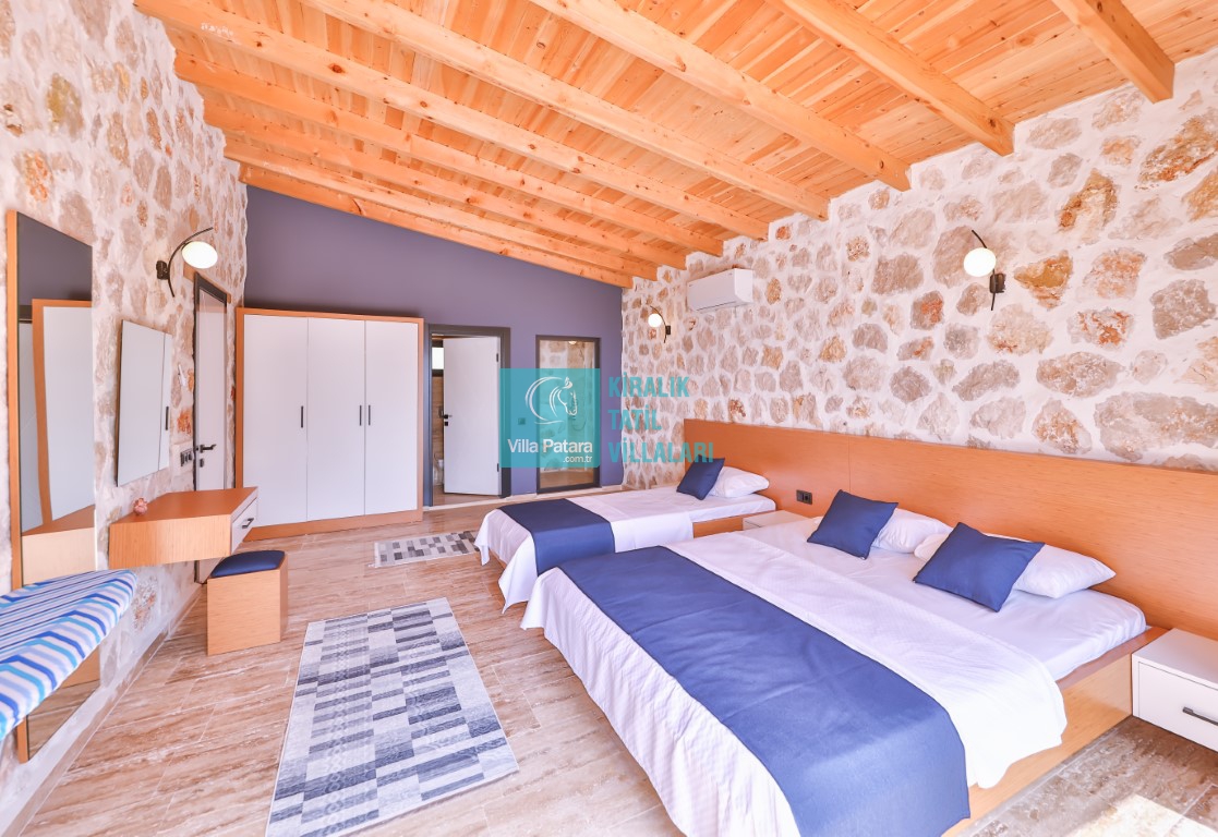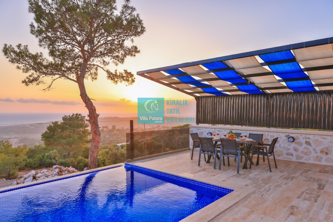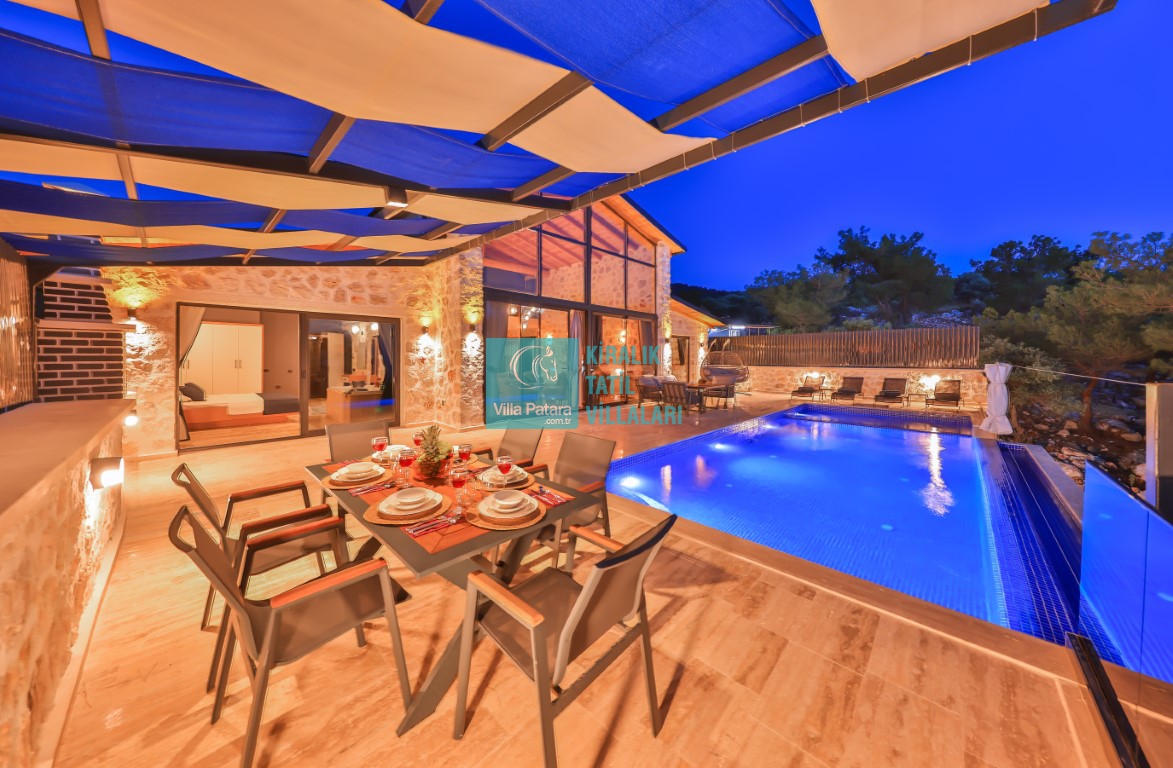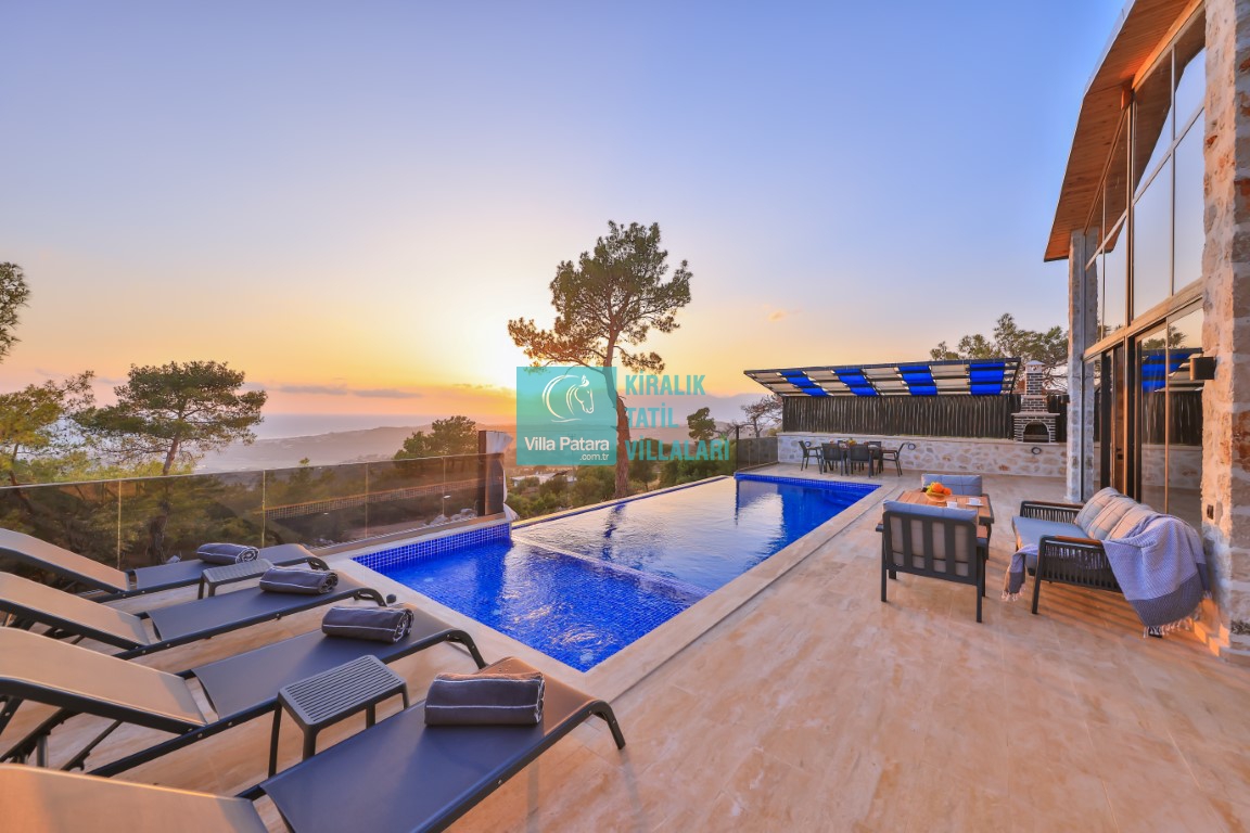 Villa Ela; doğa ile iç içe konumlandırılmış Patara Plajı manzarasına hakim villamız 3 yatak odası ile 7 kişi konaklama kapasitelidir. Lüks dizayna sahip villamızda tatiliniz boyunca gerekli olabilecek tüm temel araç ve gereçler vardır. Ayrıca mini hamam ve sauna odası da ihmal edilmemiştir. Ayrıca miniklerimizde unutulmamış olup, çocuk oyun alanı ve çocuk havuzu vardır. 1. yatak odası çift kişilik yatak, jakuzi ve wc-banyodan oluşmaktadır. 2. yatak odası çift kişilik yatak ve single yatak ile 3 kişi konaklamalı olup wc-banyodan oluşmaktadır. 3 yatak odası asma katta yer almakta olup 2 adet single yatak ve wc-banyodan oluşmaktadır.