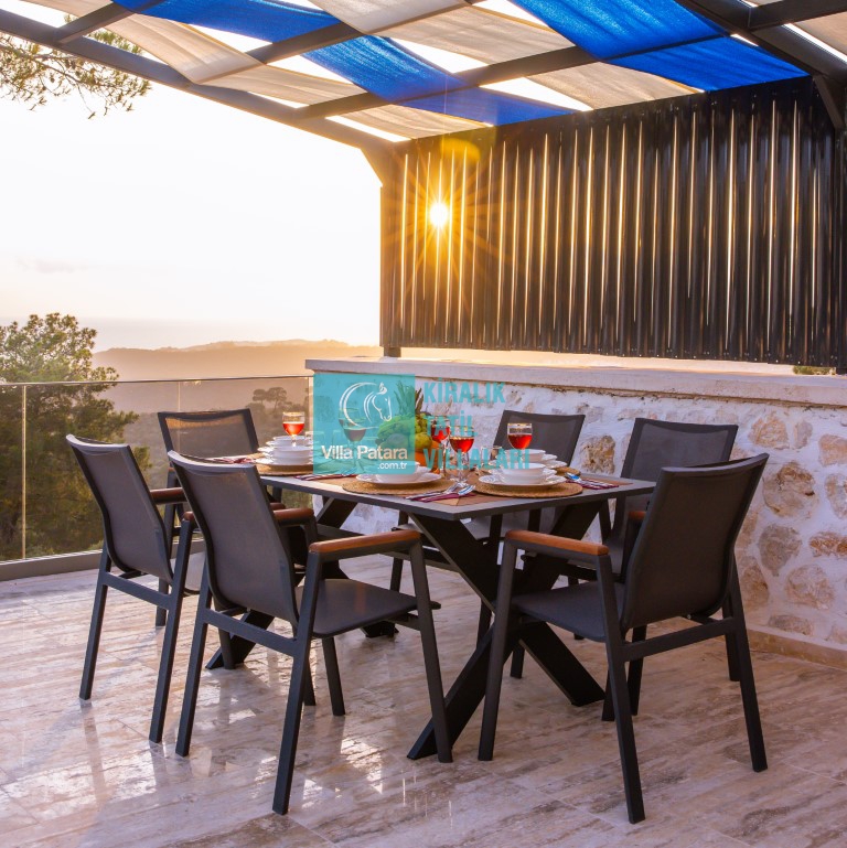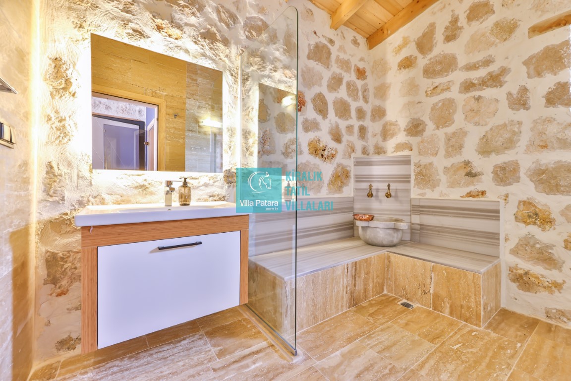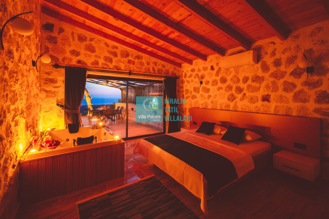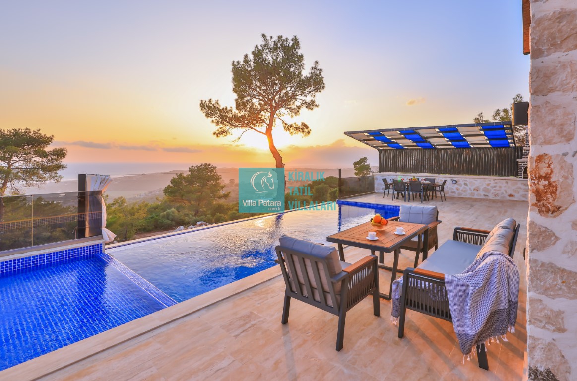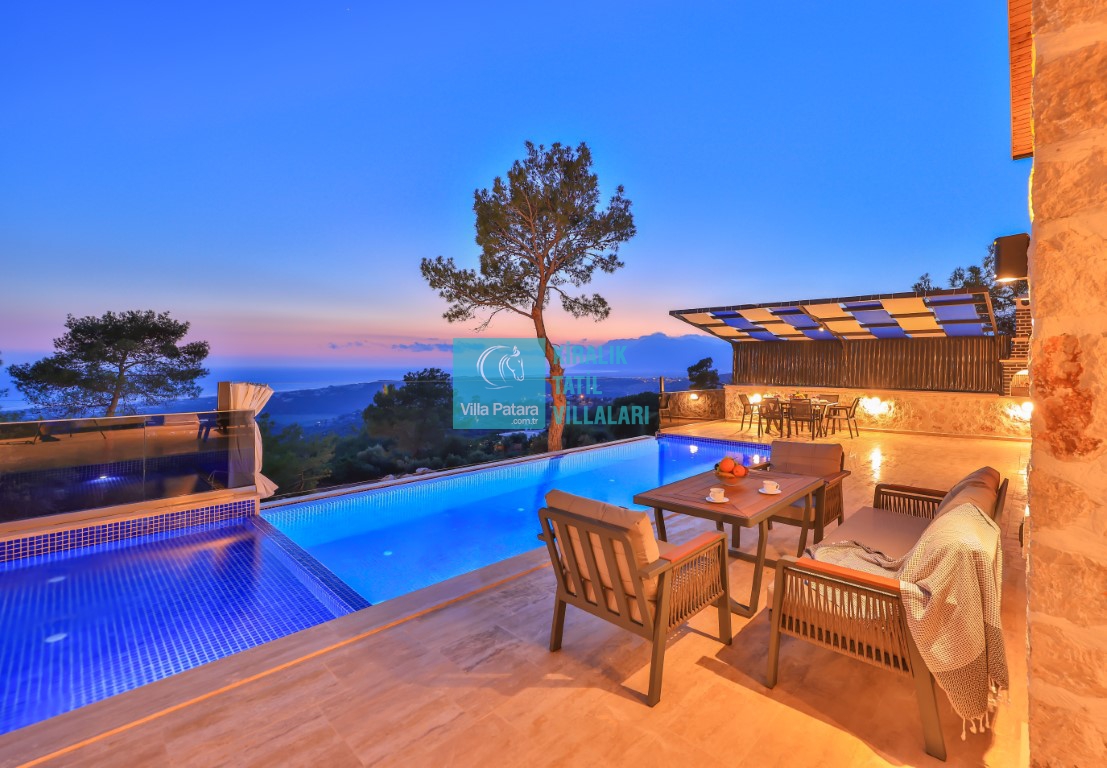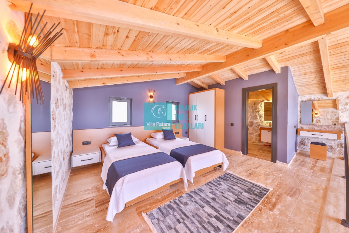 Villa Ela; doğa ile iç içe konumlandırılmış Patara Plajı manzarasına hakim villamız 3 yatak odası ile 7 kişi konaklama kapasitelidir. Lüks dizayna sahip villamızda tatiliniz boyunca gerekli olabilecek tüm temel araç ve gereçler vardır. Ayrıca mini hamam ve sauna odası da ihmal edilmemiştir. Ayrıca miniklerimizde unutulmamış olup, çocuk oyun alanı ve çocuk havuzu vardır. 1. yatak odası çift kişilik yatak, jakuzi ve wc-banyodan oluşmaktadır. 2. yatak odası çift kişilik yatak ve single yatak ile 3 kişi konaklamalı olup wc-banyodan oluşmaktadır. 3 yatak odası asma katta yer almakta olup 2 adet single yatak ve wc-banyodan oluşmaktadır.