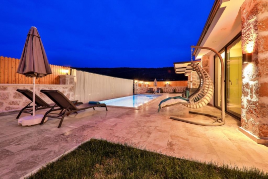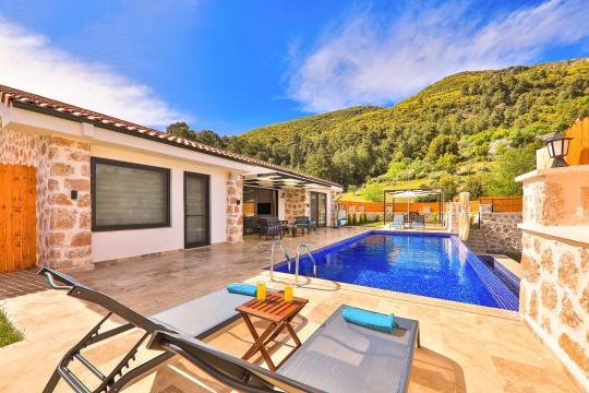 Villa Elçin, Kalkan / Sarıbelen’de bulunan lüks bir kiralık tatil villasıdır. Bu eşsiz villa, unutulmaz bir tatil deneyimi sunmak için özenle tasarlanmıştır. Korunaklı bir havuza sahip olması, size ve sevdiklerinize özel bir ortam sağlarken, gizlilik ve rahatlık sunar. Kalkan / Sarıbelen’de bulunan Villa Elçin'nin benzersiz özelliklerinden biriside geniş ve ferah bir bahçeye sahip olmasıdır. Bu güzel ve geniş bahçe, sizlere özgürce vakit geçirebileceğiniz geniş bir alan sunar. Günün yorgunluğunu atabileceğiniz, açık havada keyifli bir akşam yemeği yiyebileceğiniz veya sadece serin bir içecek eşliğinde dinlenebileceğiniz bir ortam sağlar.