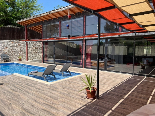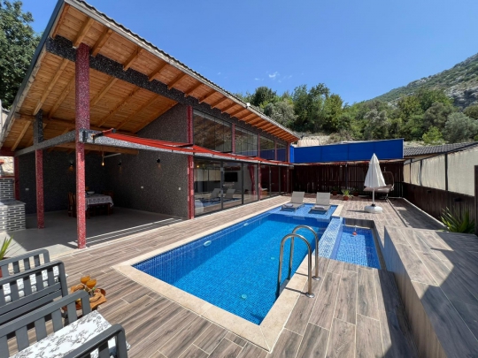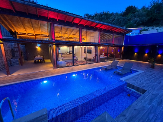 Villa Em-Cey, ahşap kullanılarak dekore edilen, doğanın içinde sessizliğin, huzurun buluştuğu eşsiz korunaklı ve doğal bir konuma sahiptir. Odası jakuzili olan villamızda. oldukça geniş tutulan bahçe ve tahta havuz terasına sahiptir. Villamızın havuzu korunaklı olup, siz değerli misafirlerimizin keyifli bir tatil geçirmesi için tasarlanmıştır. Unutulmaz anılar biriktireceğiniz villa Em-Cey, sizleri beklemektedir.