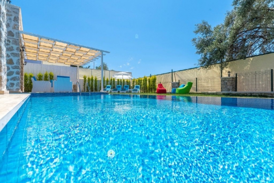 Korunaklı bahçe ve havuzu ile balayı çiftlerinin ve muhafazakar ailelerin de tercih edebileceği doğa içerisinde, doğa ve kısmen deniz manzaralı ideal bir tatil villasıdır.