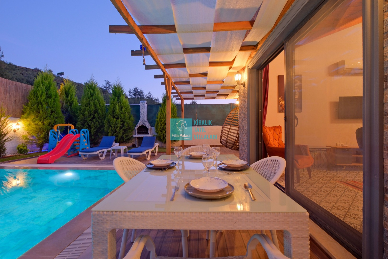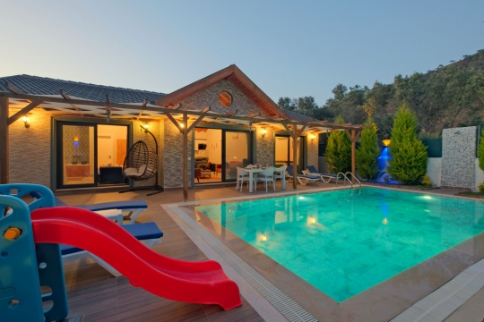 Genel Notlar : Doğa içerisinde yer alan villalarımızın tamamı böcek, sinek, kelebek, haşereler vb. için düzenli olarak ilaçlanmaktadır. Doğa içerisinde konuma sahip olan villalarda, merkezde yer alan villalara nazaran böcek, sinek, kelebek, haşereler vb. çıkma ihtimali daha yüksektir. Bu not sadece bu villa ile ilgili değildir. Doğa içerisinde konuma sahip olan tüm villaların bilgilerinde yazılmaktadır.