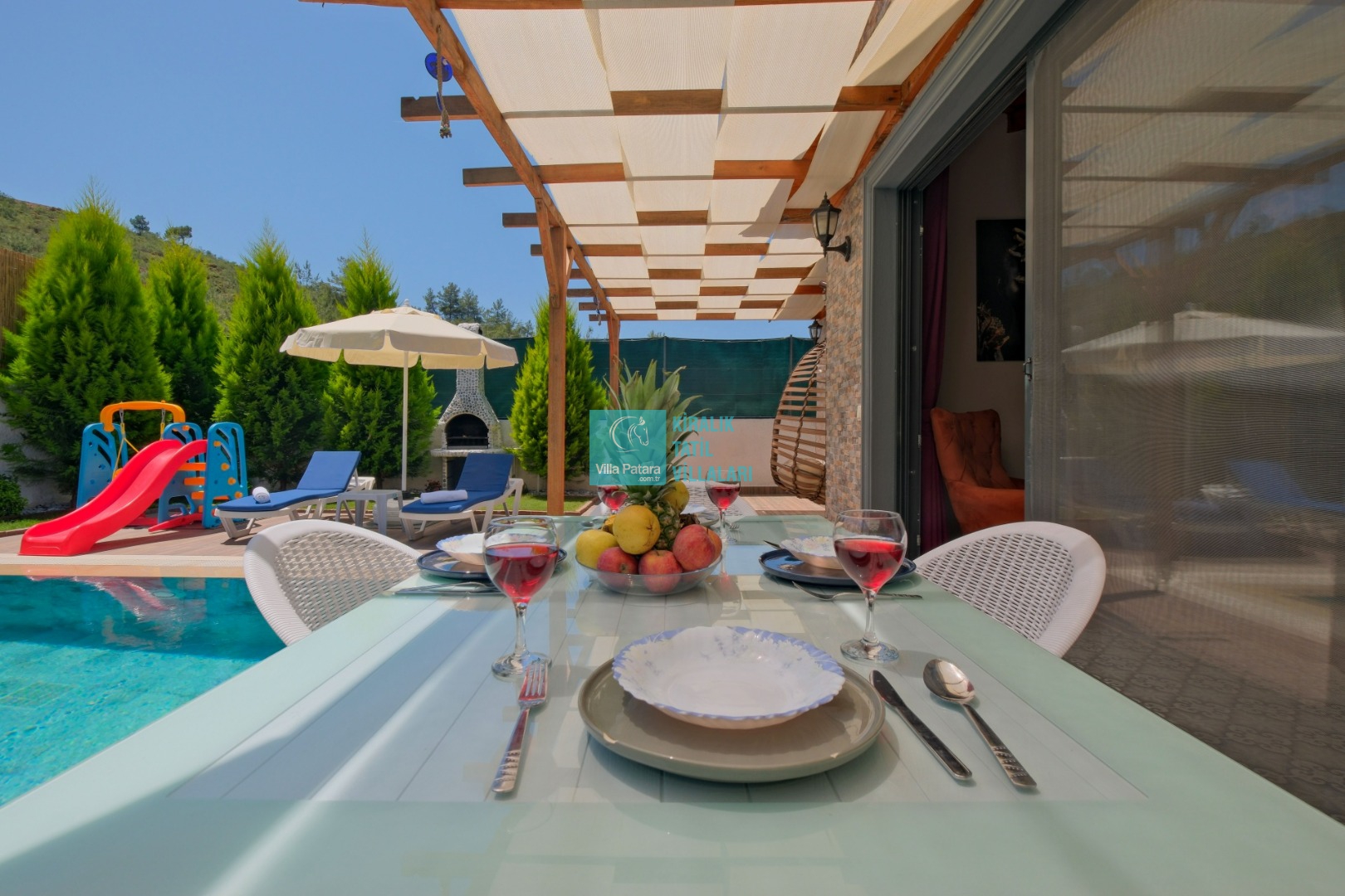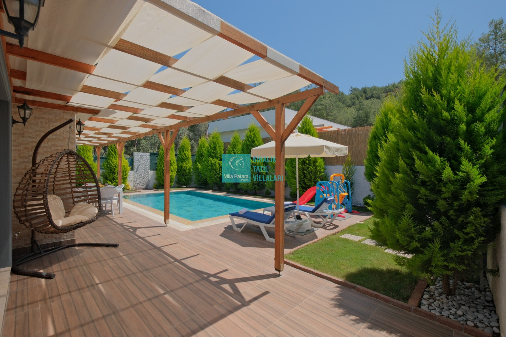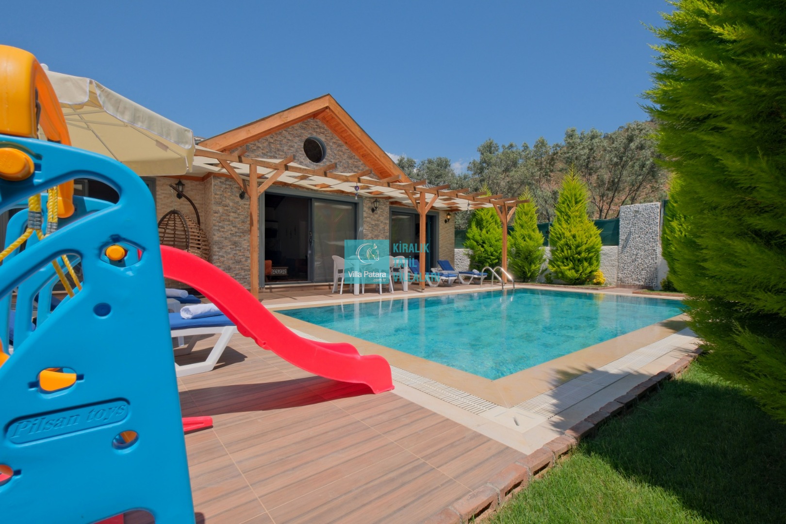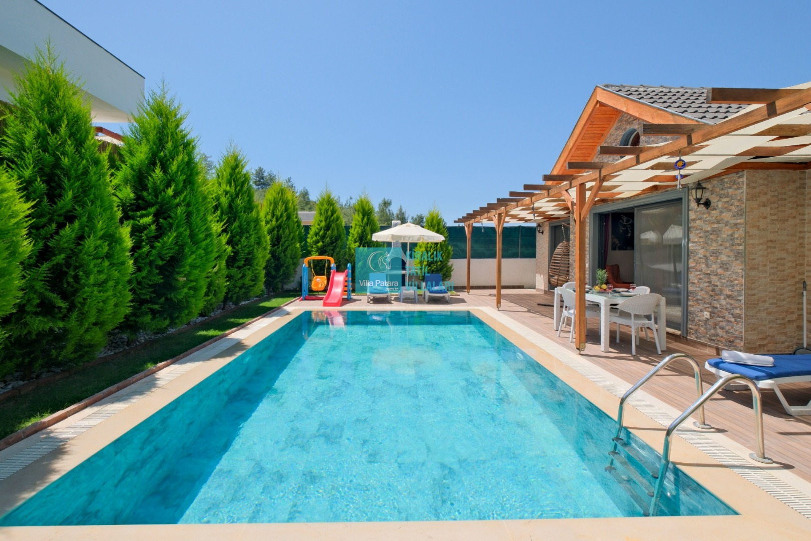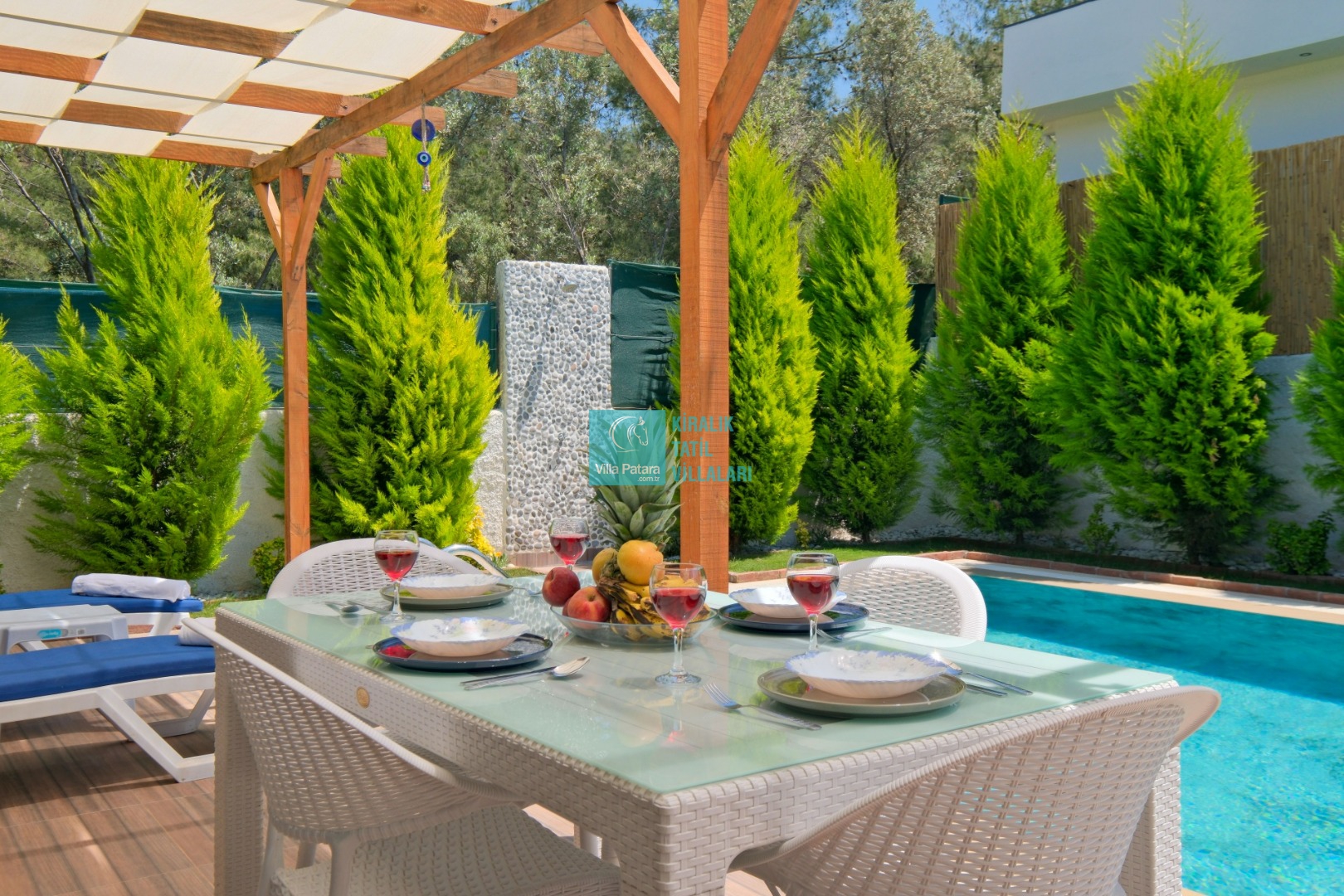 Villa Enser, Fethiye Karagedik mevkiinde konumlanan şirin bahçeli havuzu oldukça korunaklı villamızdır. Müstakil yüzme havuzu dışarıya karşı oldukça korunaklı olduğu için tatilde gözlerden uzak olmak isteyen misafirlerimiz rahat edeceklerdir.