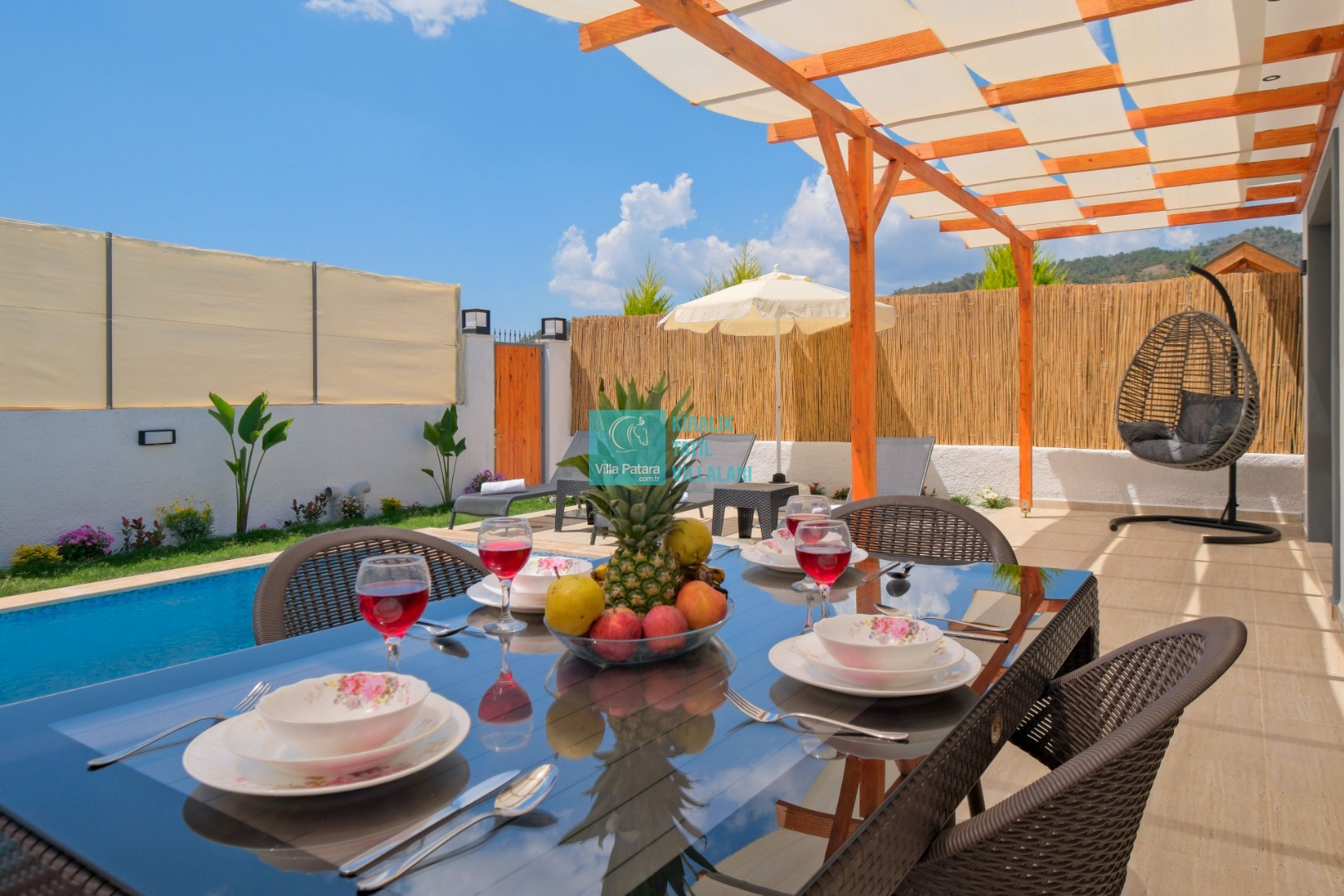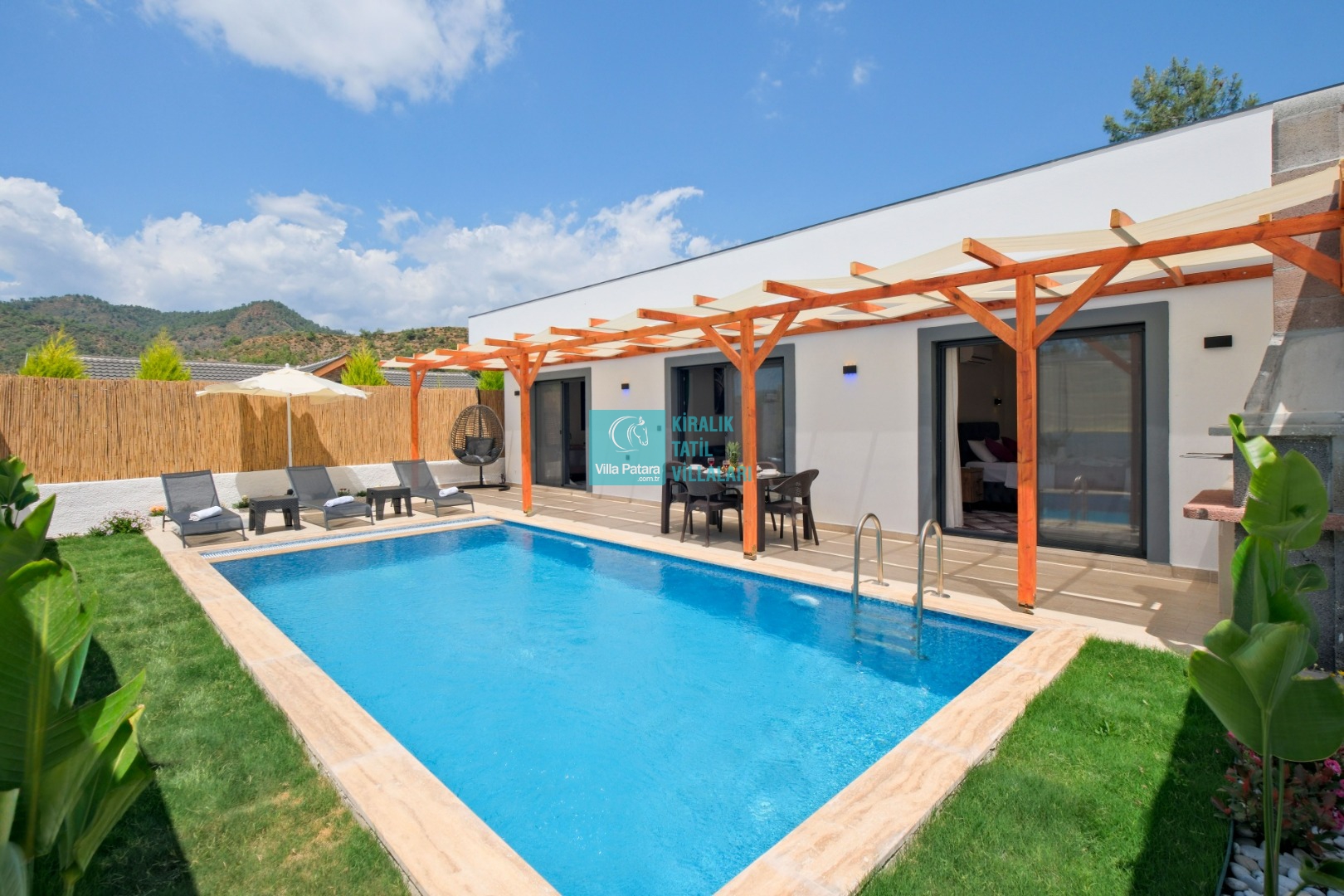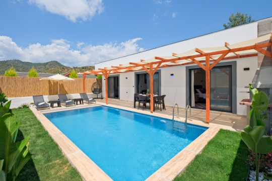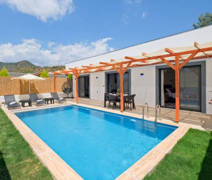 Villa Enser Duo, Fethiye Karagedik mevkiinde konumlanan şirin bahçeli havuzu oldukça korunaklı villamızdır. Müstakil yüzme havuzu dışarıya karşı oldukça korunaklı olduğu için tatilde gözlerden uzak olmak isteyen misafirlerimiz rahat edeceklerdir.