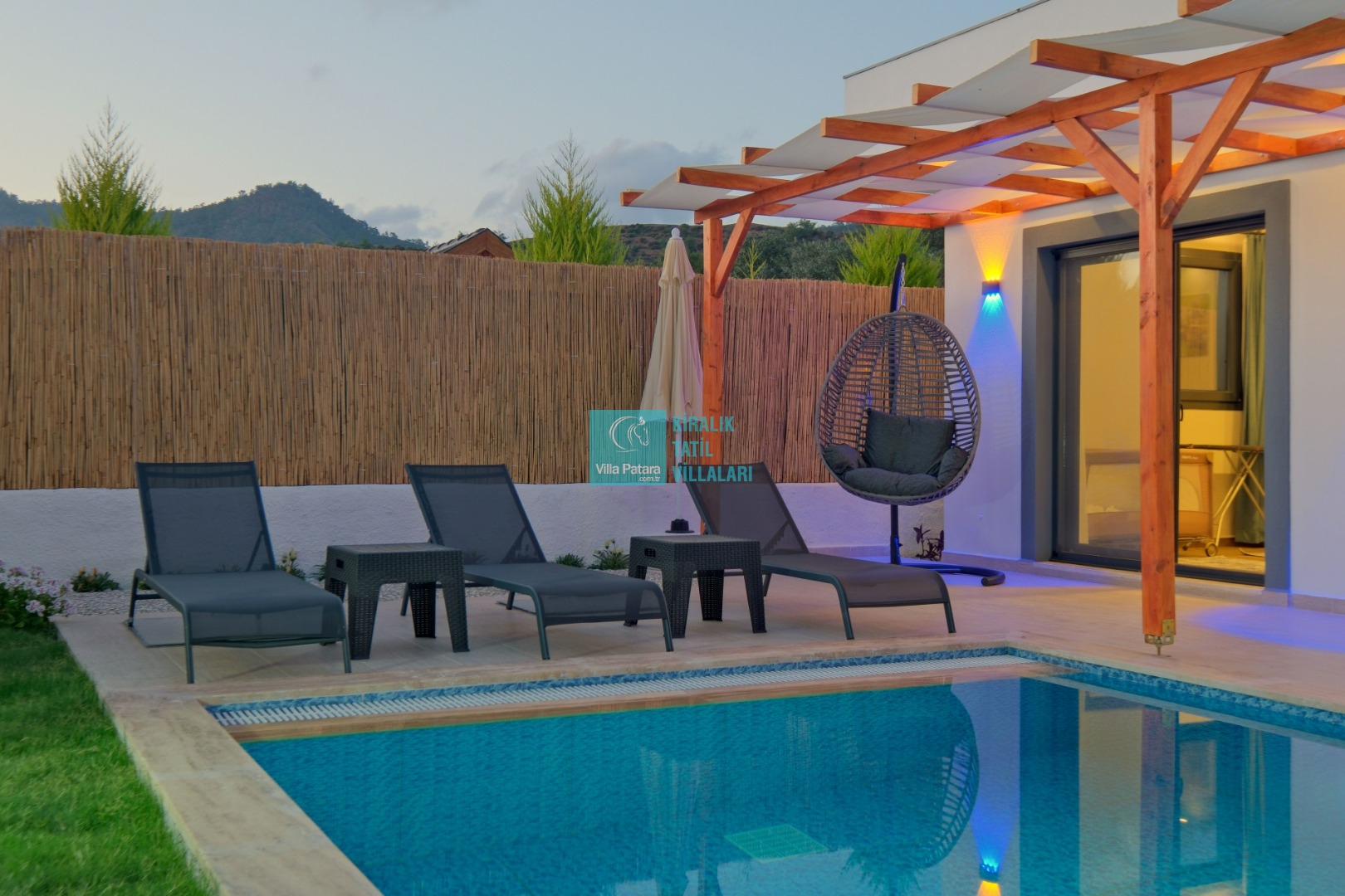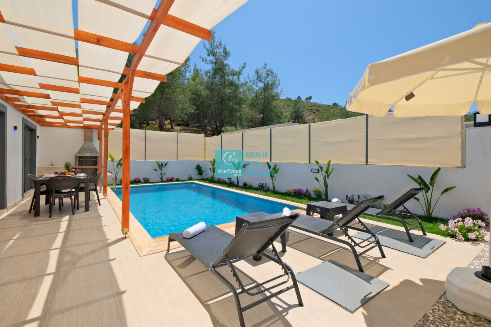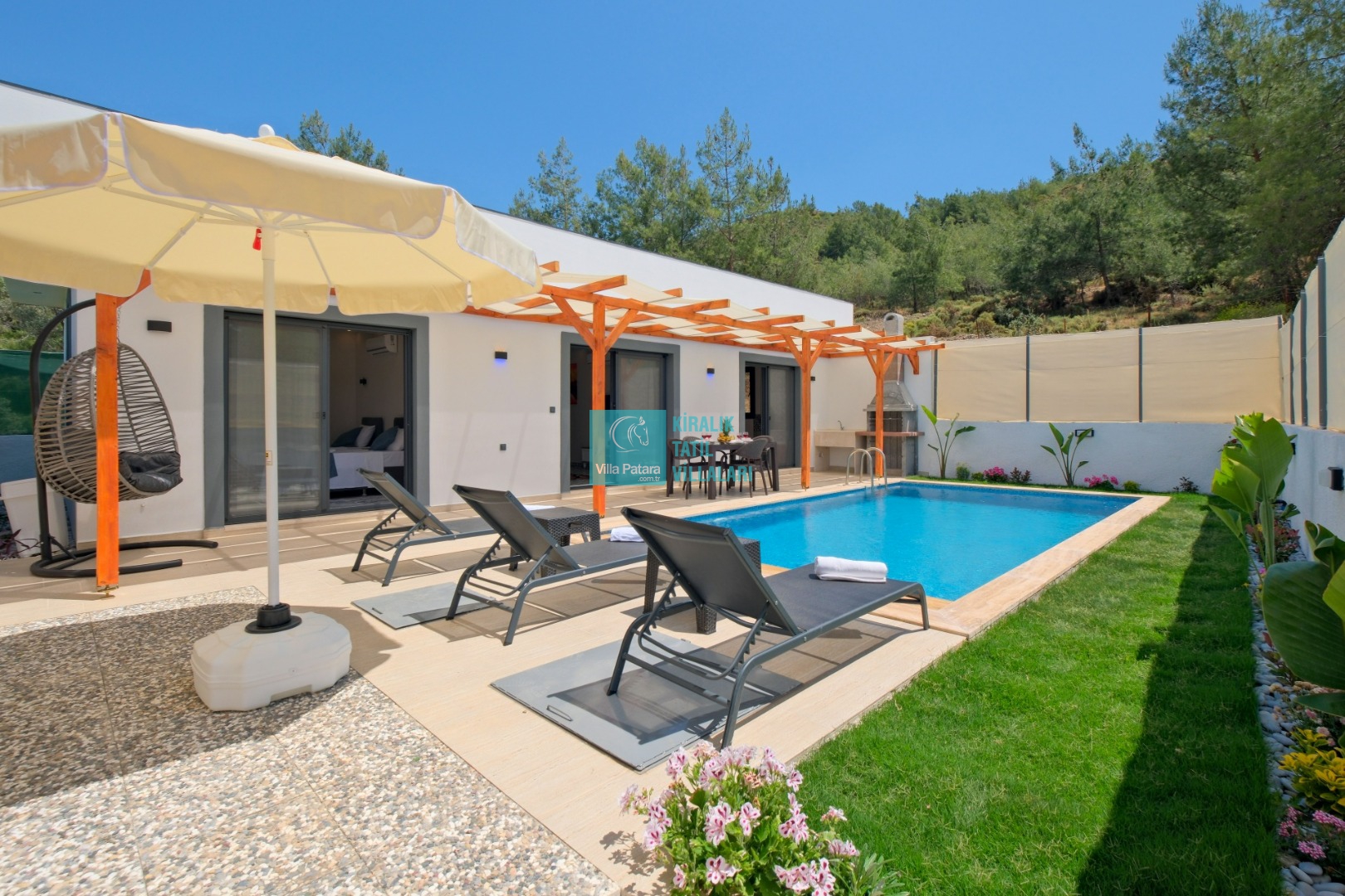 Villa Enser Duo, Fethiye Karagedik mevkiinde konumlanan şirin bahçeli havuzu oldukça korunaklı villamızdır. Müstakil yüzme havuzu dışarıya karşı oldukça korunaklı olduğu için tatilde gözlerden uzak olmak isteyen misafirlerimiz rahat edeceklerdir.