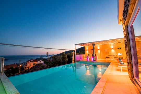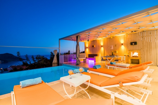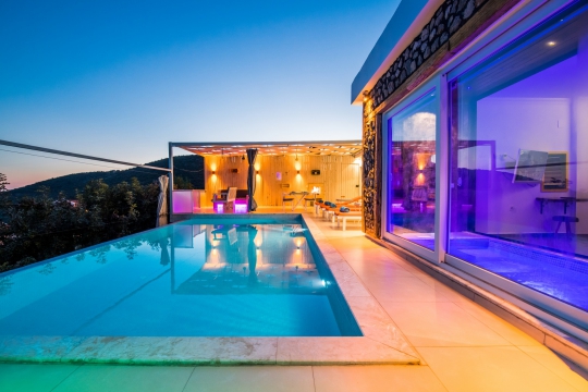 kapalı ısıtmalı ve jakuzili havuza sahiptir. Dış havuz ısıtmalı değildir. Havuz terasının dışarıdan görünmemesi villanın sahip olduğu özelliklerden birisidir. Kalkan şehir merkezine 1,5 kilometre, Kaputaş Plajına 8 kilometre uzaklıkta olan kiralık villada; Kalkan Körfezi ve Deniz manzarasına şahit olabilirsiniz. Villada; havuz terası, bahçe, dikdörtgen biçiminde yüzme havuzu ile oturma alanları mevcuttur. 2 yatak odalı, 2 banyolu ve her yatak odası klimalıdır. Havuzu korunaklı, Muhafazakar villa niteliğindedir. Özel açık otopark bulunur. Isıtma seçenekleri olarak, klima mevcuttur. Odalarda bulunan lüks mobilyalar, ücretsiz Wi-fi ve konforlu tatil seçenekleri; tüm beklentilerinizi karşılayacaktır.