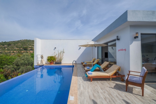 VillA Esin, Kaş Kalkan Üzümlü mevkiinde doğa ile iç içe, mesafeli deniz manzaralı günlük kiralık tatil villamızdır: Panoramik doğa ve deniz manzarasına sahip villamız, size huzurlu ve unutulmaz bir tatil fırsatı sunuyor.