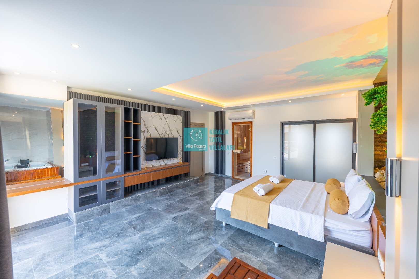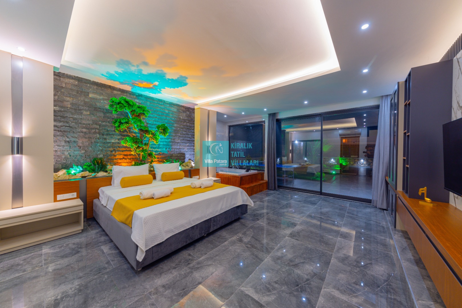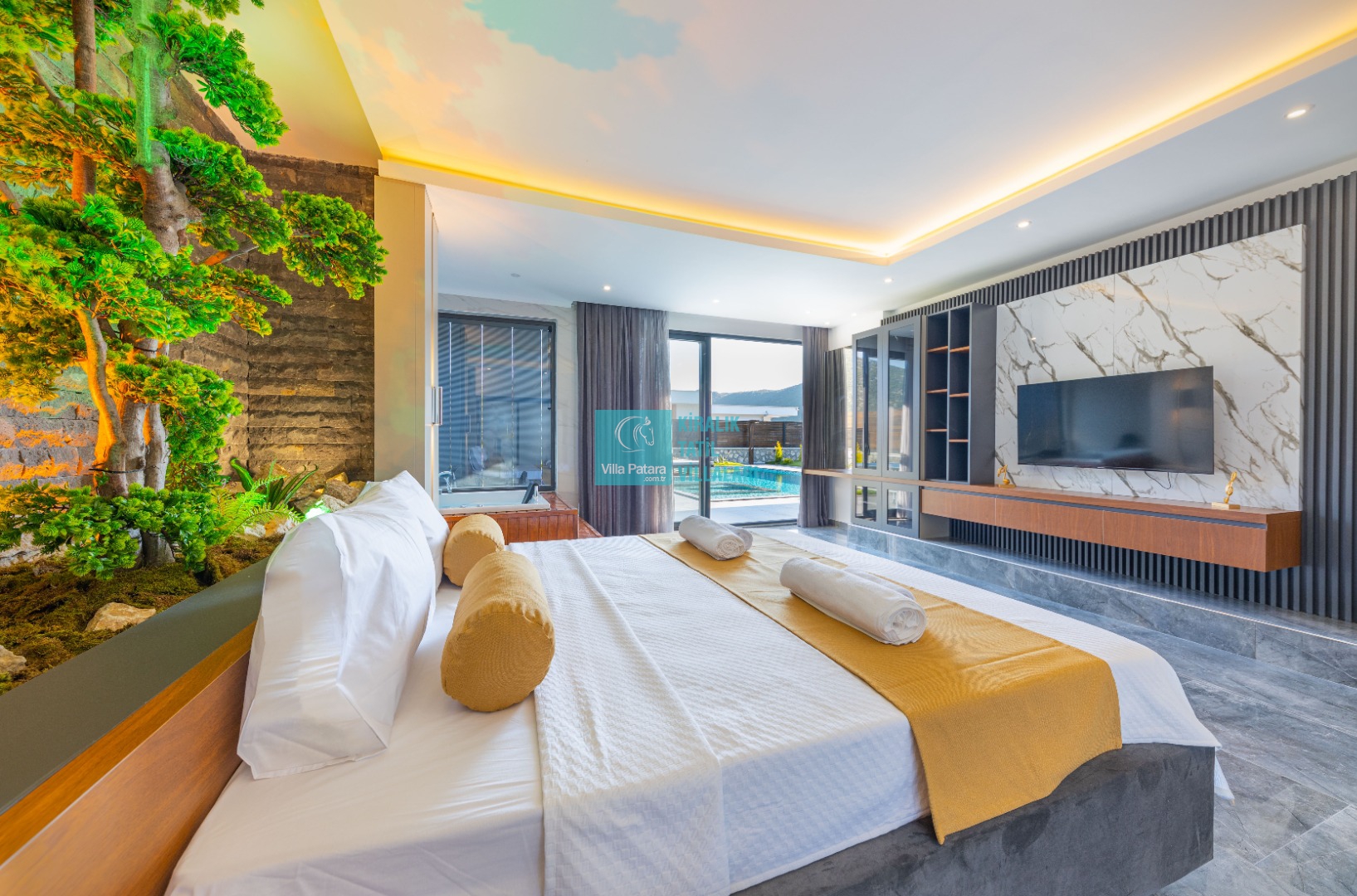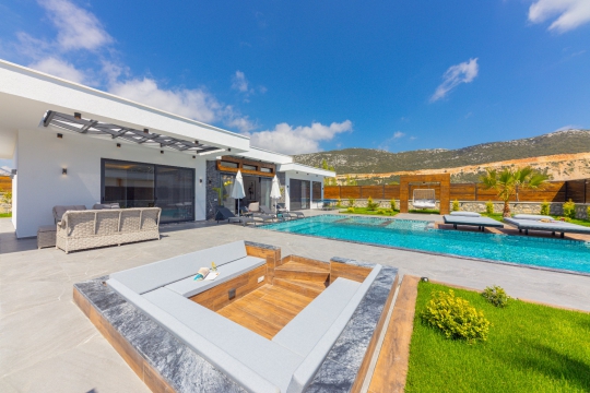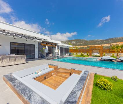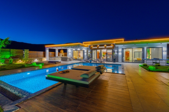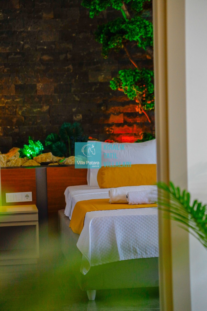 Kalkan'ın Bezirgan bölgesinde yer alan Villa Estelia Bezirgan ultra lüks tasarımı ve geniş havuz terası ile misafirlerini büyülüyor. Yapımı 2023 yılında tamamlanan villamız 2 yatak odasından oluşuyor. 2 odasının içerisinde de ebeveyn tuvalet&banyo yer almaktadır. Deluxe yatak odasında 2 kişilik büyük bir jakuzi bulunuyor.
