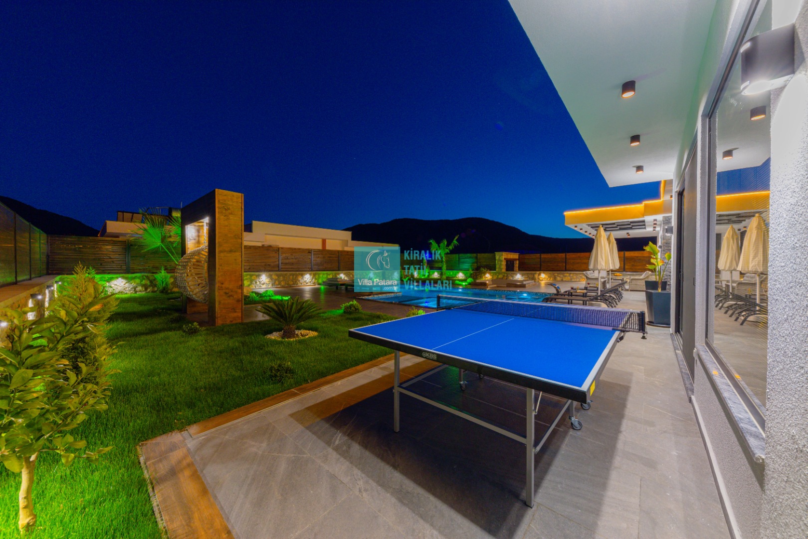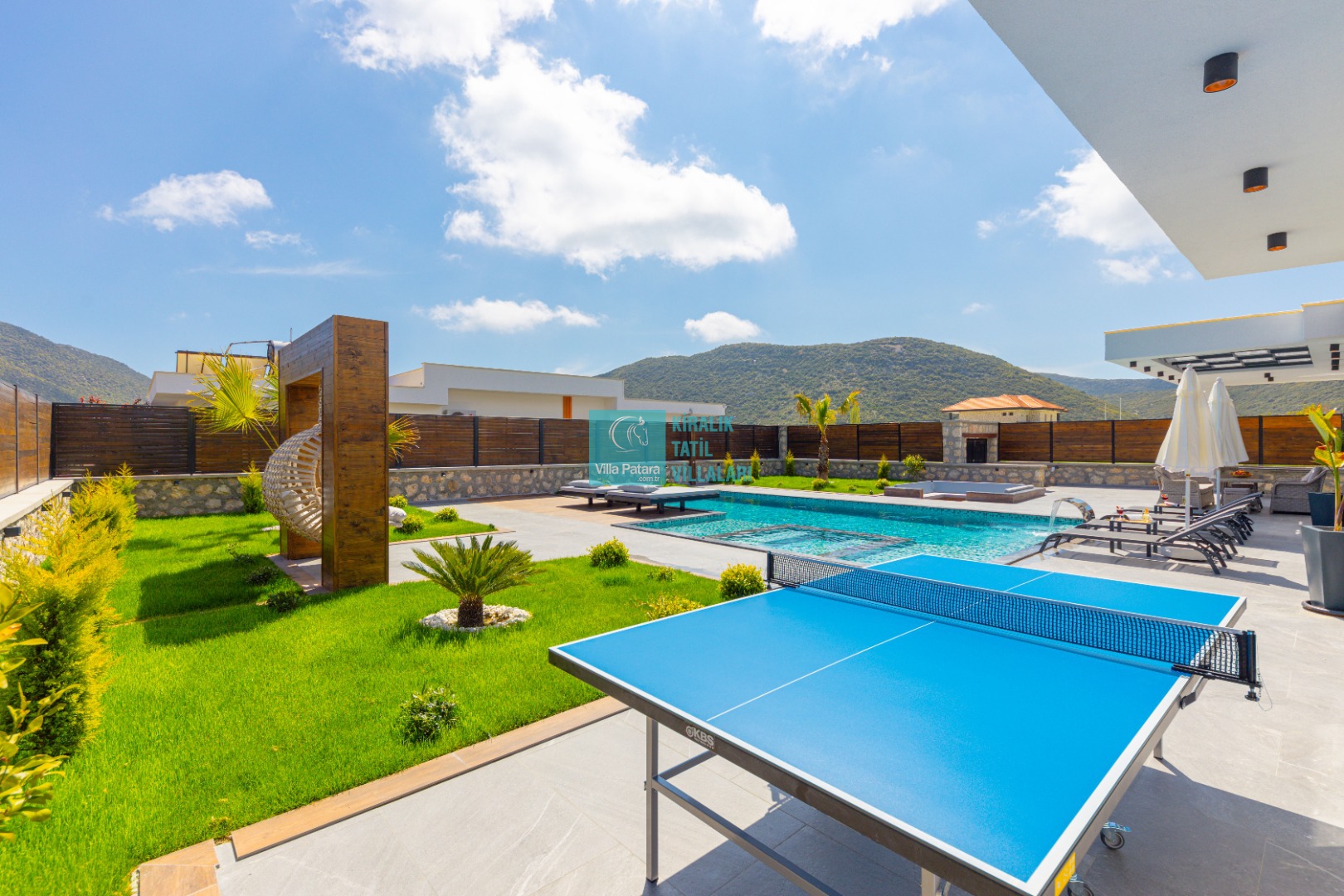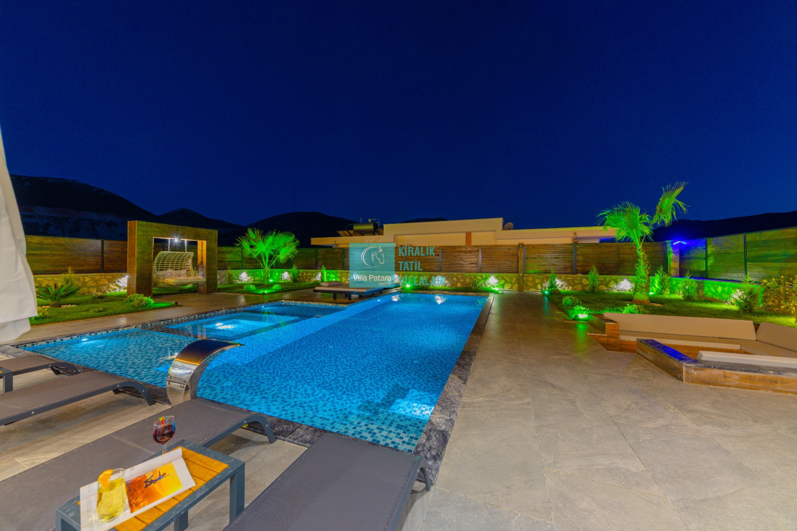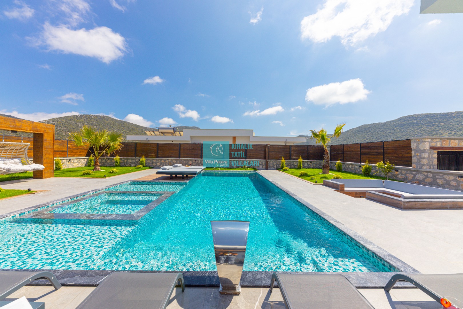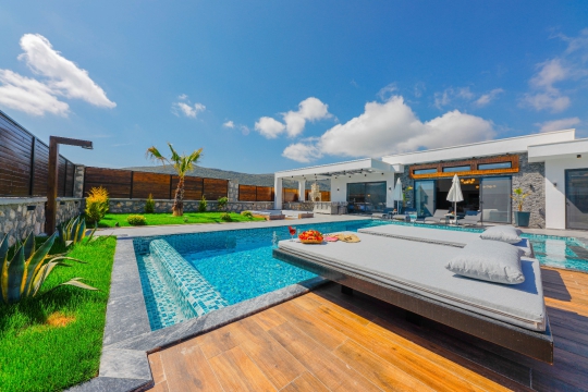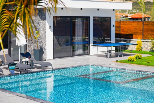 Geniş havuz ve bahçe alanı özellikle şehir karmaşasından yorulmuş sakinlik ve huzurlu bir tatil isteyen misafirlerimize göre tasarlanmıştır. Çok sayıda oturma ve güneşlenme alanı, salıncak, barbekü, masa tenisi, çocuk havuzu ve sığı havuz bulunan villamız her kesimden misafirimize hitap etmektedir. Hem balayı çiftleri tarafından hem de çocuklu aileler tarafından kiralanabilen villamız etrafındaki çit sistemi sayesinde tamamen muhafazakardır. Dışarıdan görünmez. Gözlerden uzak bir tatil anlayışına oldukça uygundur.