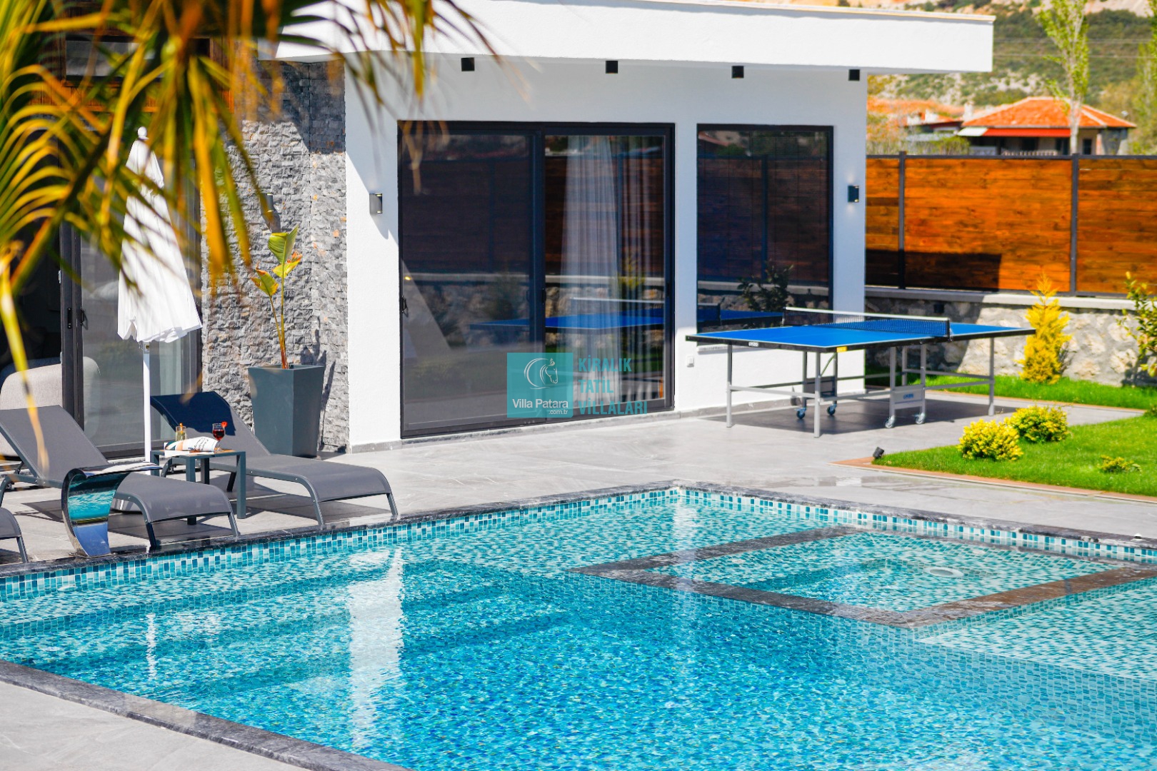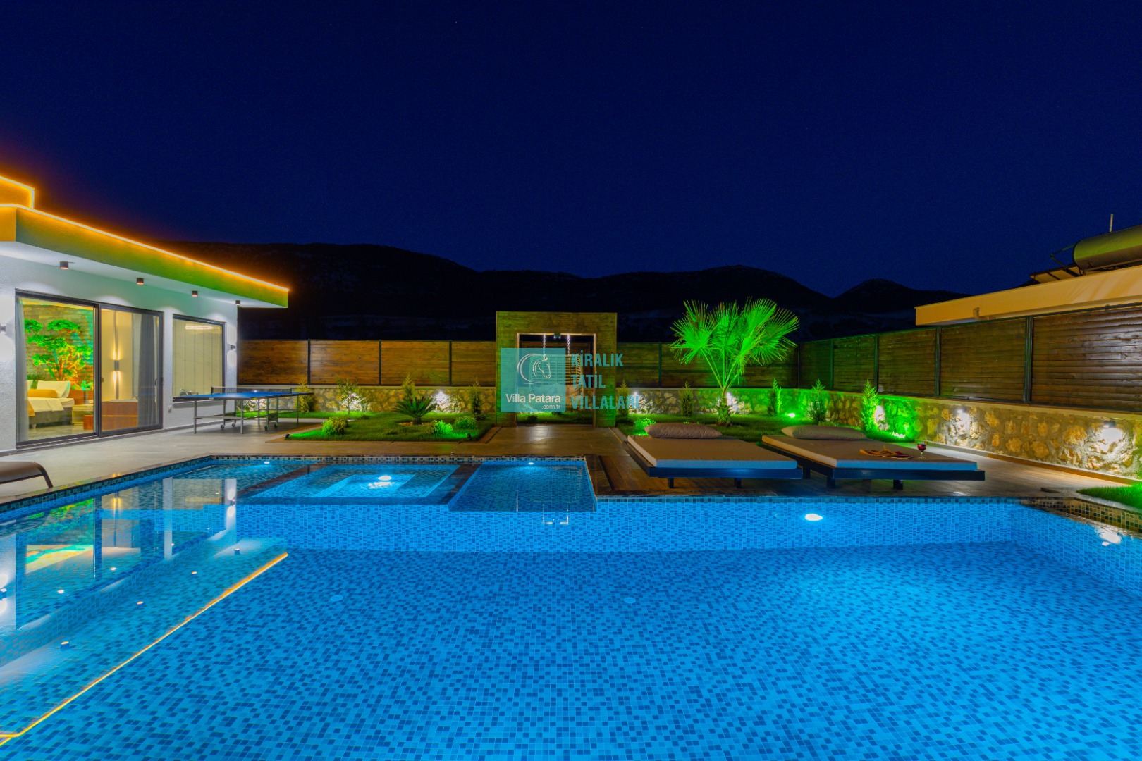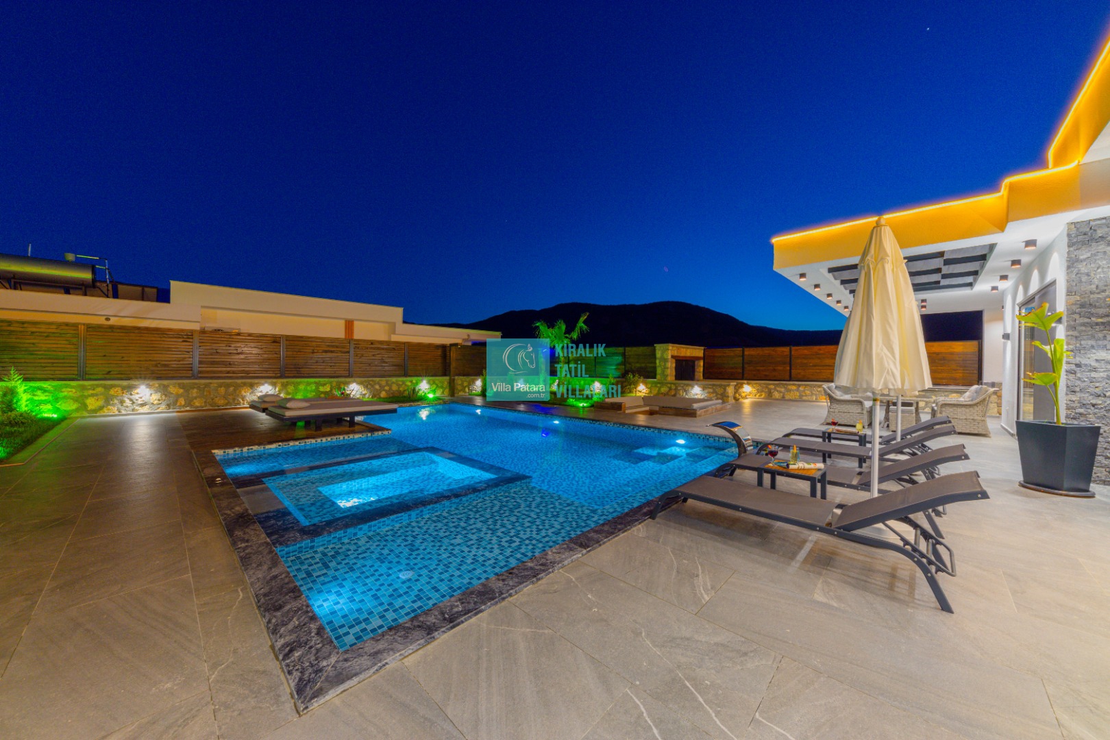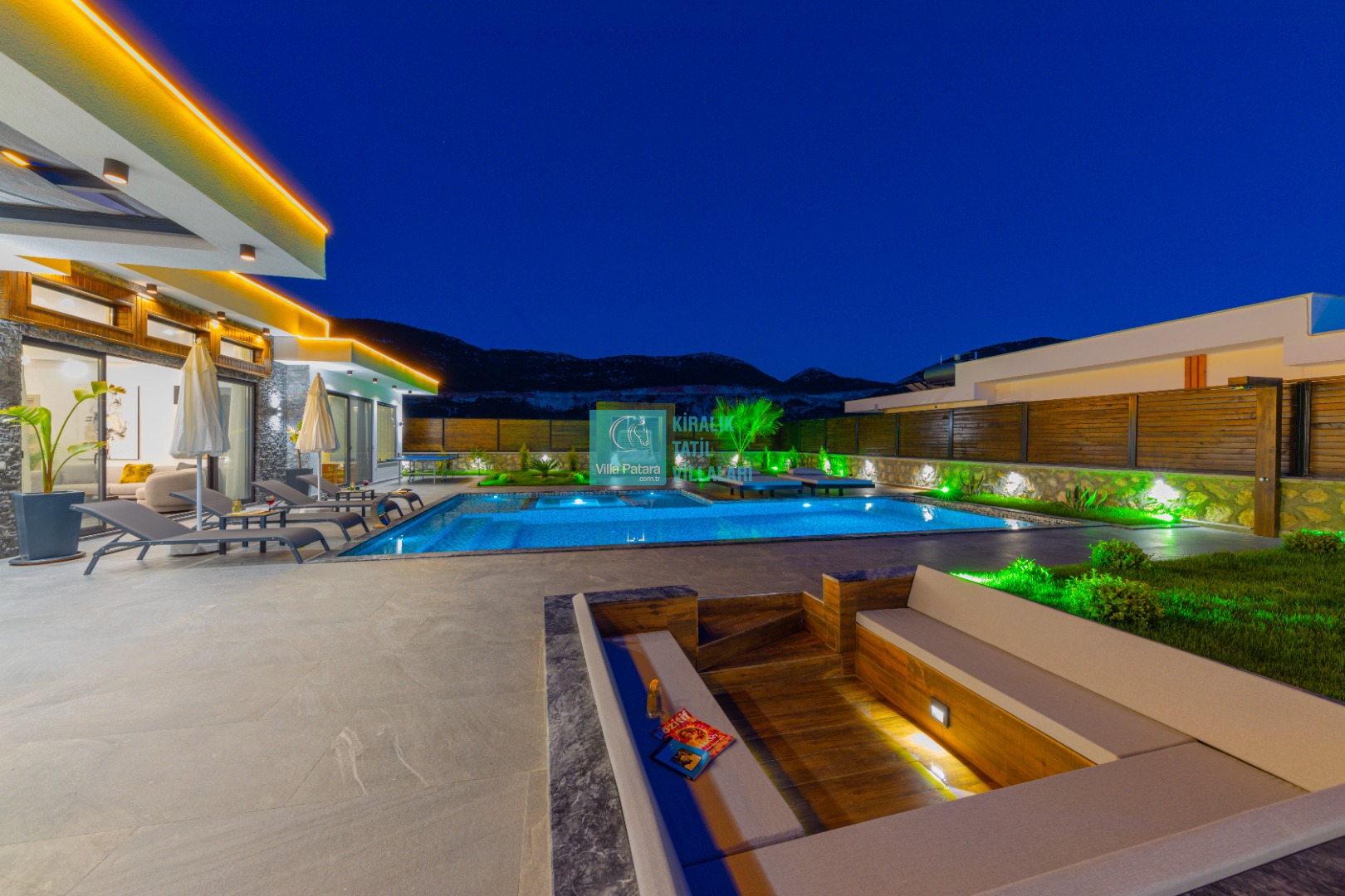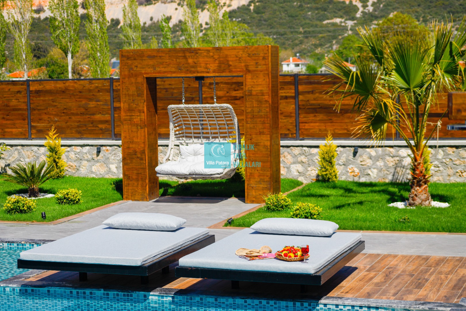 Geniş havuz ve bahçe alanı özellikle şehir karmaşasından yorulmuş sakinlik ve huzurlu bir tatil isteyen misafirlerimize göre tasarlanmıştır. Çok sayıda oturma ve güneşlenme alanı, salıncak, barbekü, masa tenisi, çocuk havuzu ve sığı havuz bulunan villamız her kesimden misafirimize hitap etmektedir. Hem balayı çiftleri tarafından hem de çocuklu aileler tarafından kiralanabilen villamız etrafındaki çit sistemi sayesinde tamamen muhafazakardır. Dışarıdan görünmez. Gözlerden uzak bir tatil anlayışına oldukça uygundur.