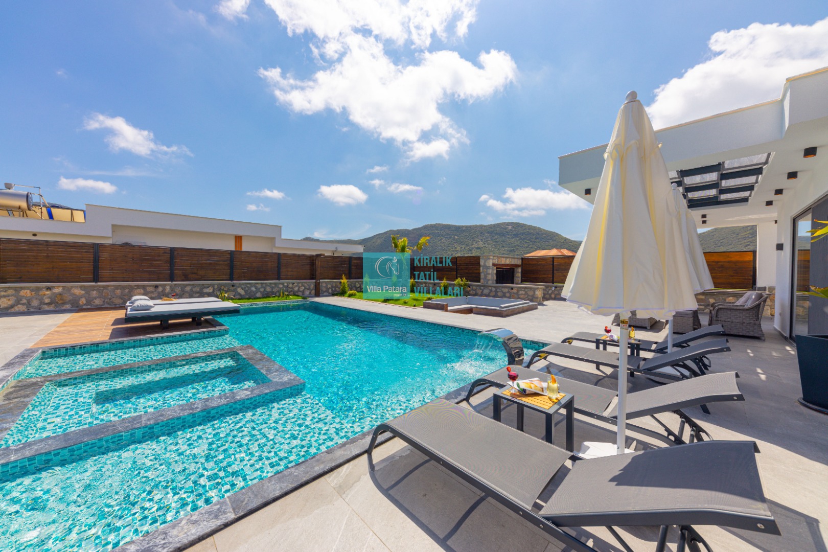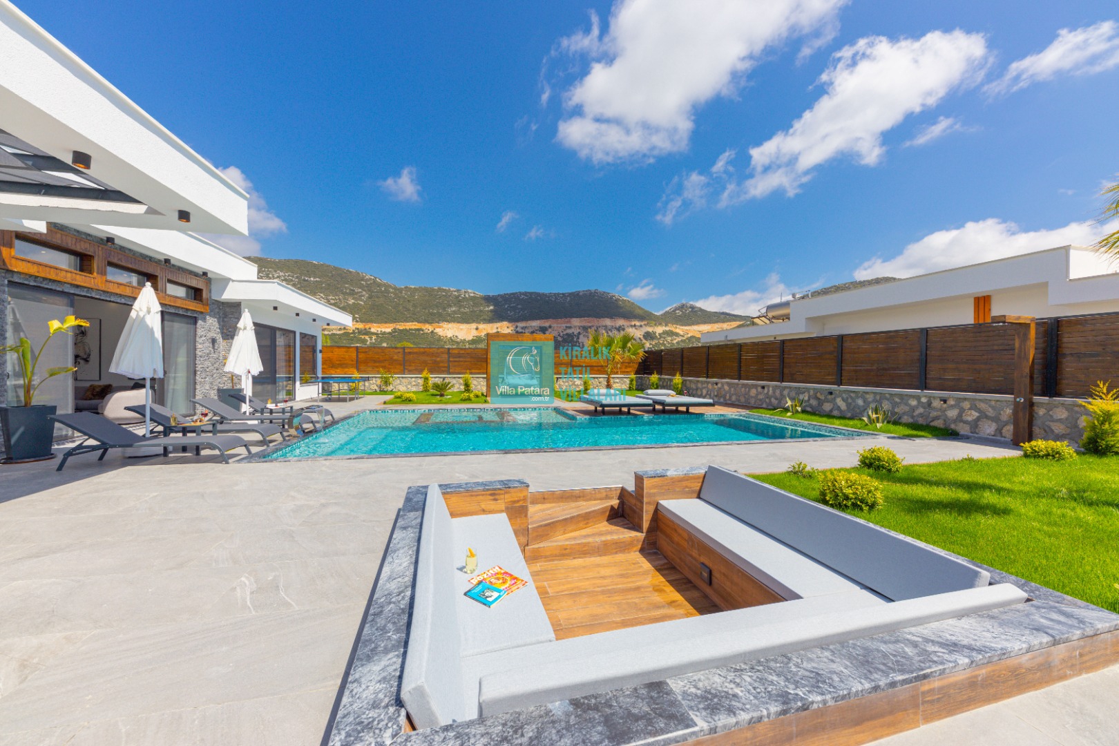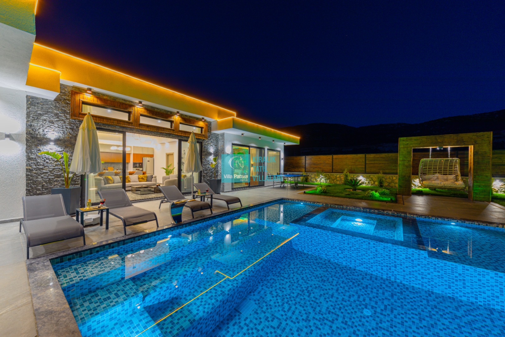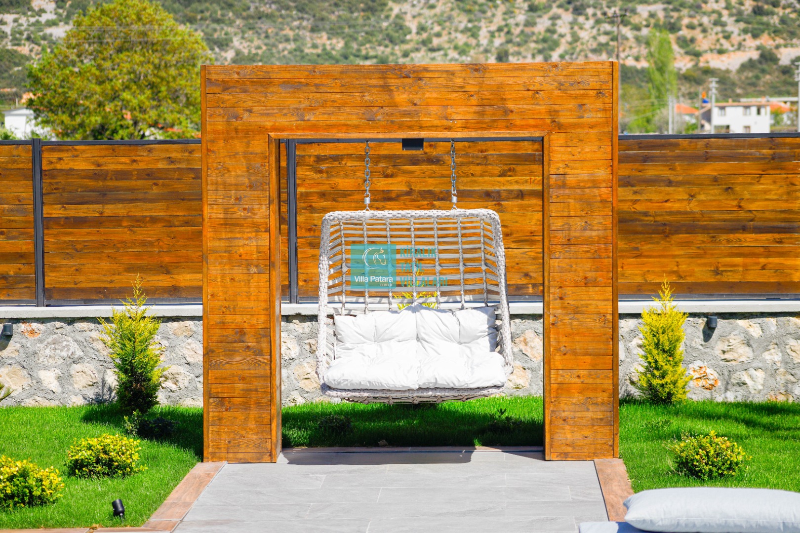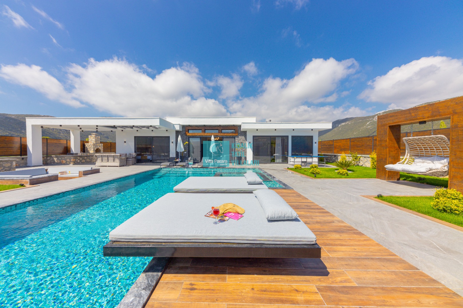 Geniş havuz ve bahçe alanı özellikle şehir karmaşasından yorulmuş sakinlik ve huzurlu bir tatil isteyen misafirlerimize göre tasarlanmıştır. Çok sayıda oturma ve güneşlenme alanı, salıncak, barbekü, masa tenisi, çocuk havuzu ve sığı havuz bulunan villamız her kesimden misafirimize hitap etmektedir. Hem balayı çiftleri tarafından hem de çocuklu aileler tarafından kiralanabilen villamız etrafındaki çit sistemi sayesinde tamamen muhafazakardır. Dışarıdan görünmez. Gözlerden uzak bir tatil anlayışına oldukça uygundur.