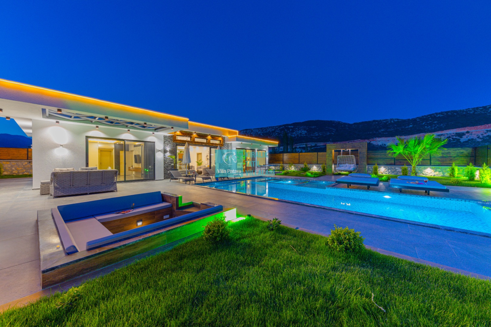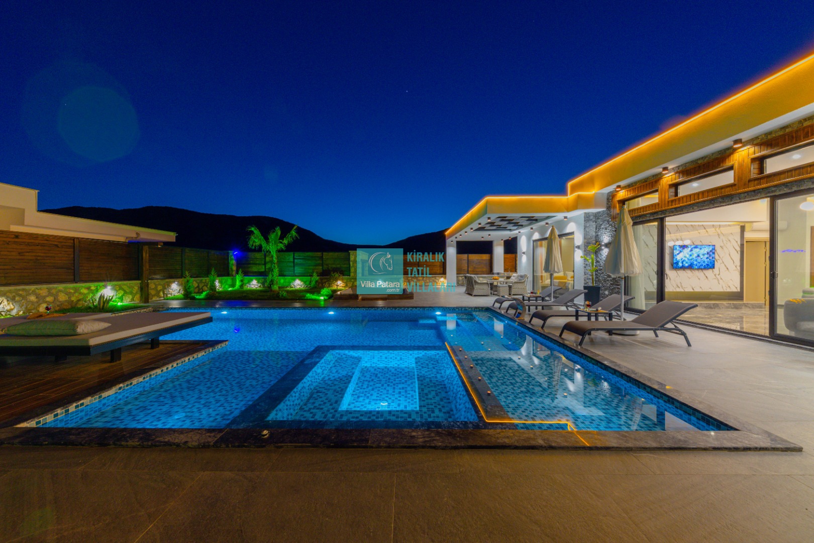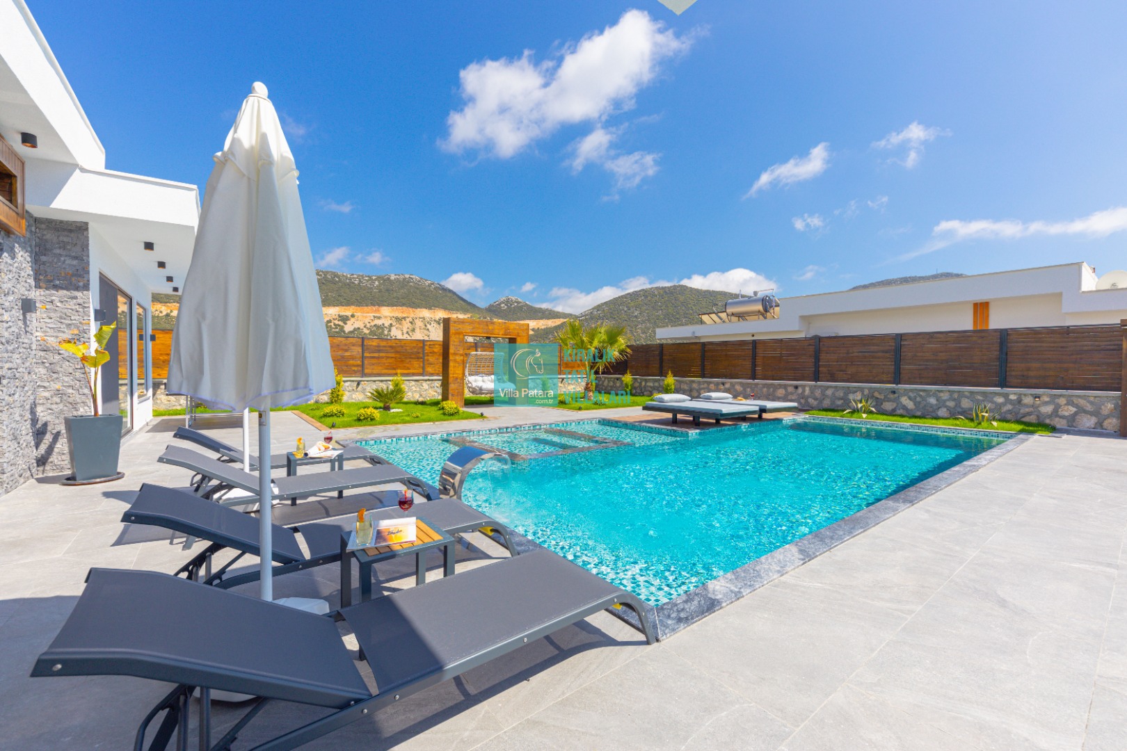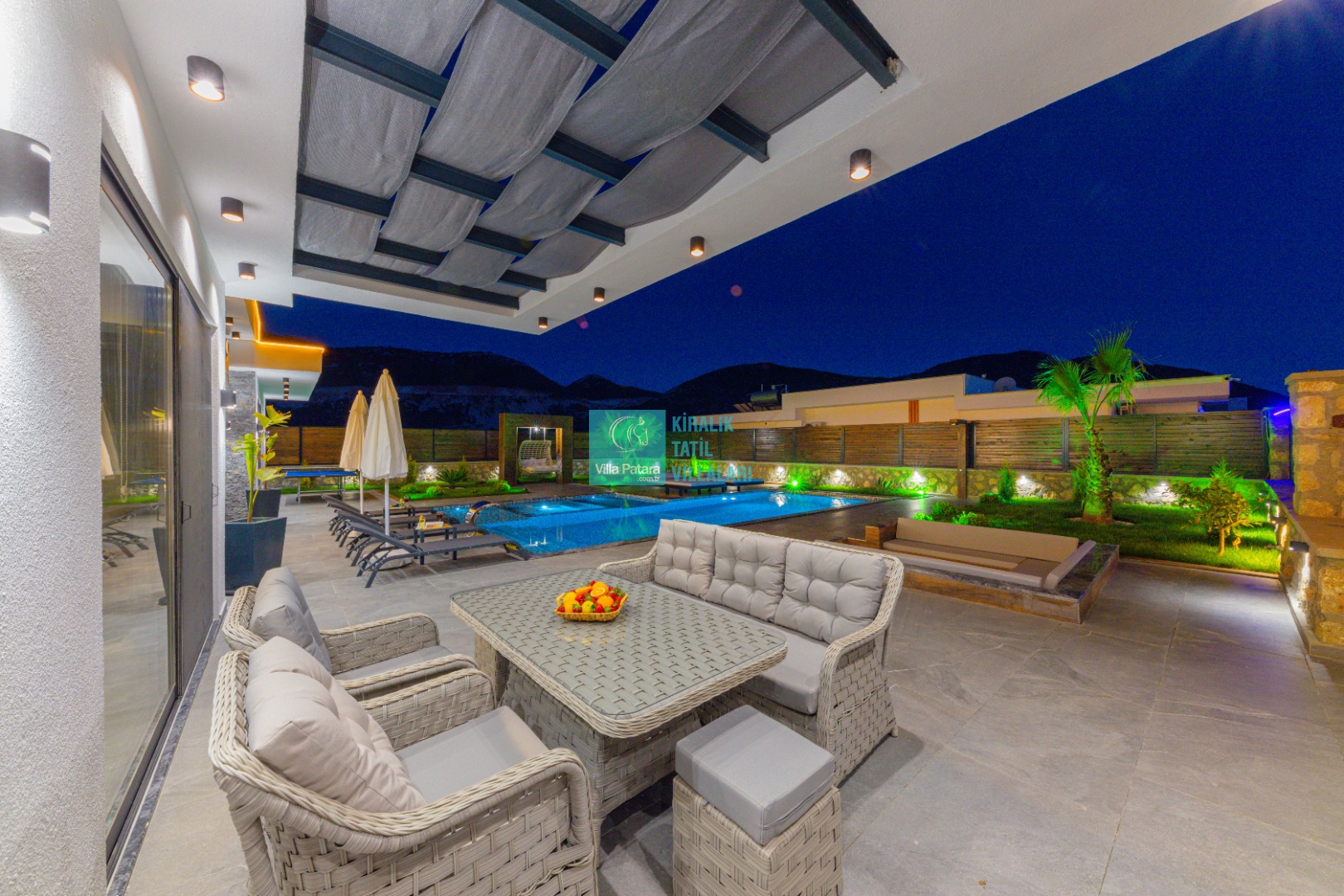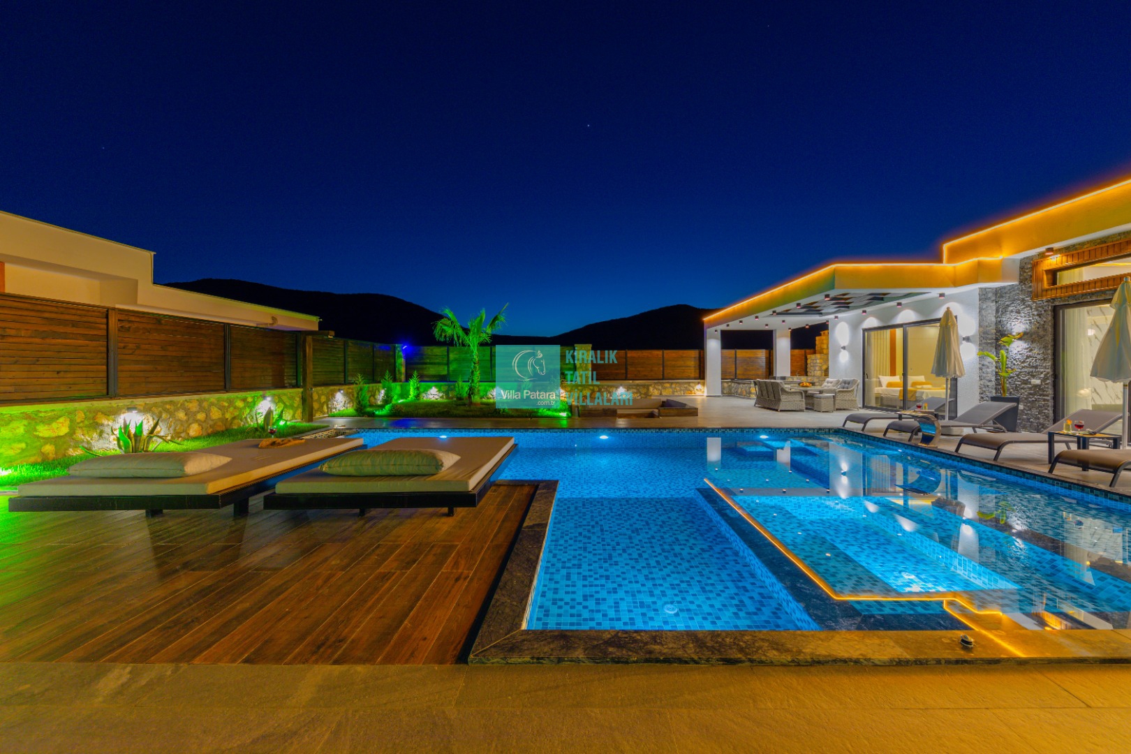 Geniş havuz ve bahçe alanı özellikle şehir karmaşasından yorulmuş sakinlik ve huzurlu bir tatil isteyen misafirlerimize göre tasarlanmıştır. Çok sayıda oturma ve güneşlenme alanı, salıncak, barbekü, masa tenisi, çocuk havuzu ve sığı havuz bulunan villamız her kesimden misafirimize hitap etmektedir. Hem balayı çiftleri tarafından hem de çocuklu aileler tarafından kiralanabilen villamız etrafındaki çit sistemi sayesinde tamamen muhafazakardır. Dışarıdan görünmez. Gözlerden uzak bir tatil anlayışına oldukça uygundur.