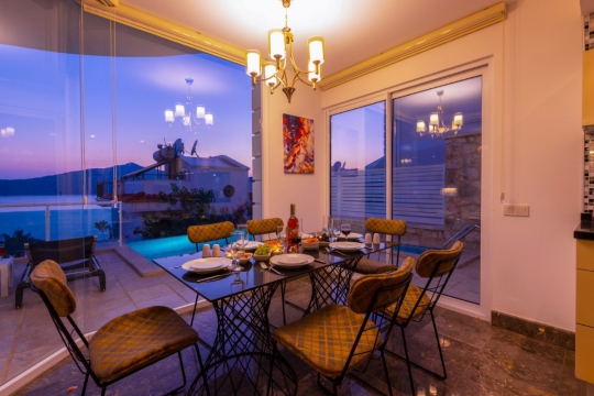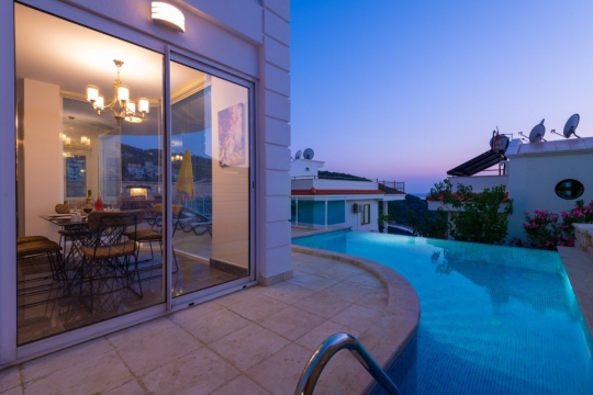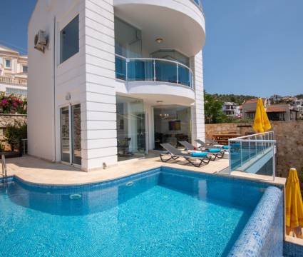 Villa Etna Kalkan'ın Kızıltaş mevkiinde bulunan muhteşem deniz manzaralı tatil villamızdır. 8 kişi kapasiteli villamızın 4 yatak odası bulunmaktadır ve her yatak odasında ebeveyn banyosu mevcuttur. Açık mutfaklı modern ve kullanımı açısından rahat edebileceğiniz imkanlar olup lüks ve konforlu salona sahiptir. Salondan havuz terasına doğrudan çıkış bulunmaktadır. Villa Etna geniş aile ve arkadaş grupları için ideal seçenekler arasındadır.