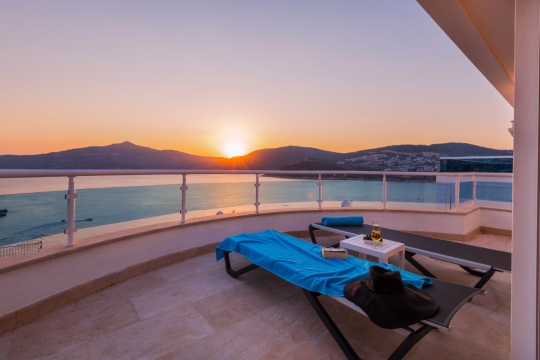 Salon: Deniz manzaralı modern Salona sahip olup Detayları; TV, uydu, oturma grubu, DVD, internet, klima, tuvalet ve lavabo bulunmaktadır.