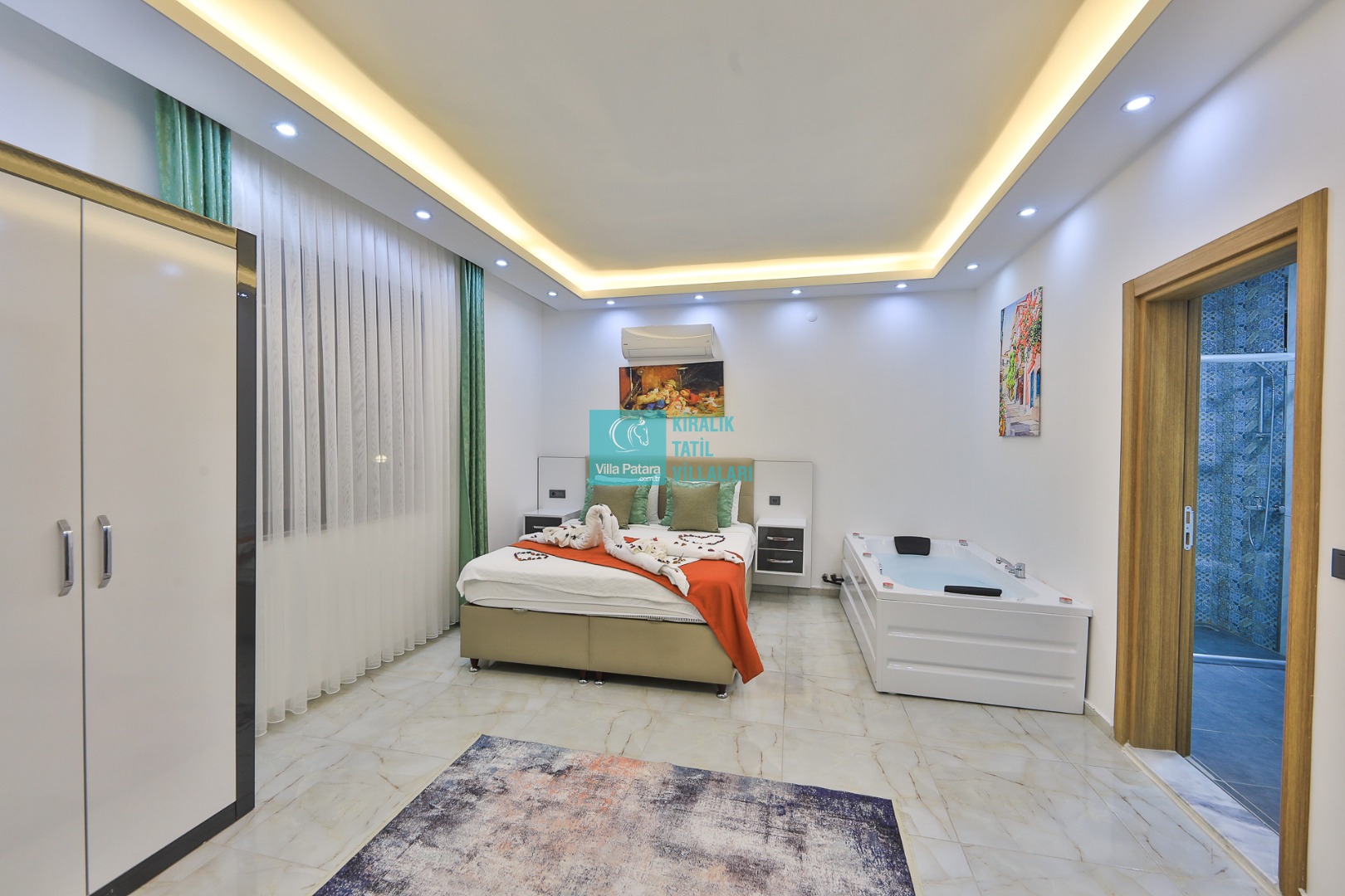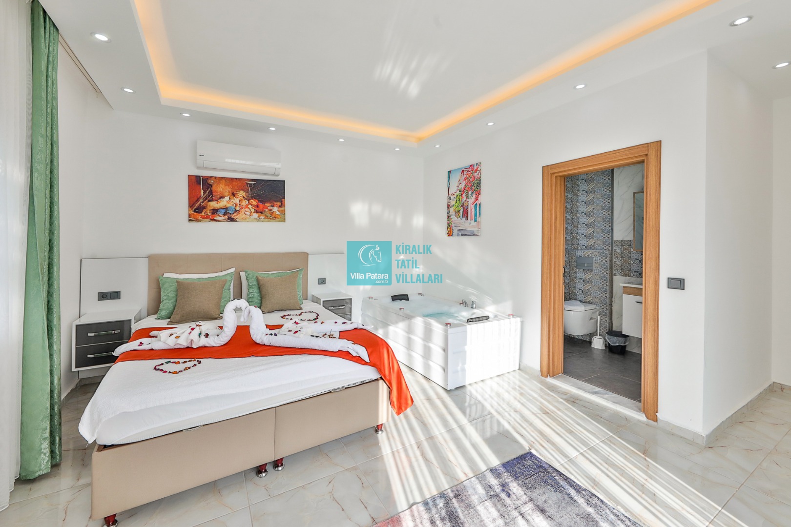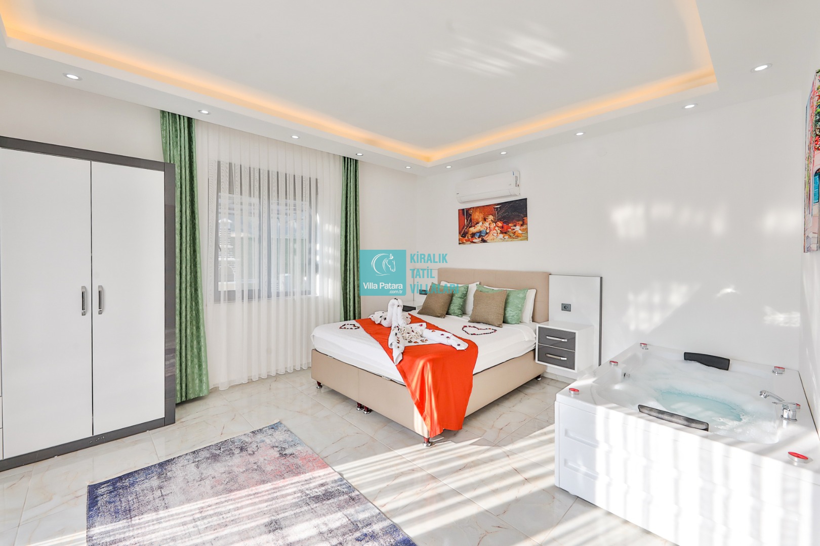 Kalkan Sarıbelen mevkisinde bulunan kiralık muhafazakar villa, sessizliğin, huzurun hakim olduğu bir villada tatil isteyen ailelerimiz için oldukça uygun bir seçenektir.Muhafazakar ve balayı villaları kategorisinde yer alan villamız, 2 yatak odası ile 4 kişilik konaklama kapasitesine sahiptir. Havuzu korunaklı ve bahçesi dışarıdan görünmeyen Villa Eylül Sarıbelen, mahremiyete önem veren ailelerimiz için huzur dolu bir tatil fırsatı sunuyor. Ayrıca Yatak odasında misafirlerimizin rahatlaması için 2 kişilik jakuzi konforu da sağlamaktadır.