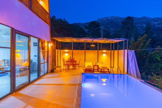 KALKAN -İSLAMLAR bölgesinde yer almakta olan villamız 1 yatak odalı 2 kişi konaklama kapasiteli balayı villasıdır. Doğa içerisinde yer alan villamız , uzaktan deniz manzarasına sahiptir. Havuz etrafı korunaklı olması sebebiyle muhafazakar çiftlerimiz için uygundur.