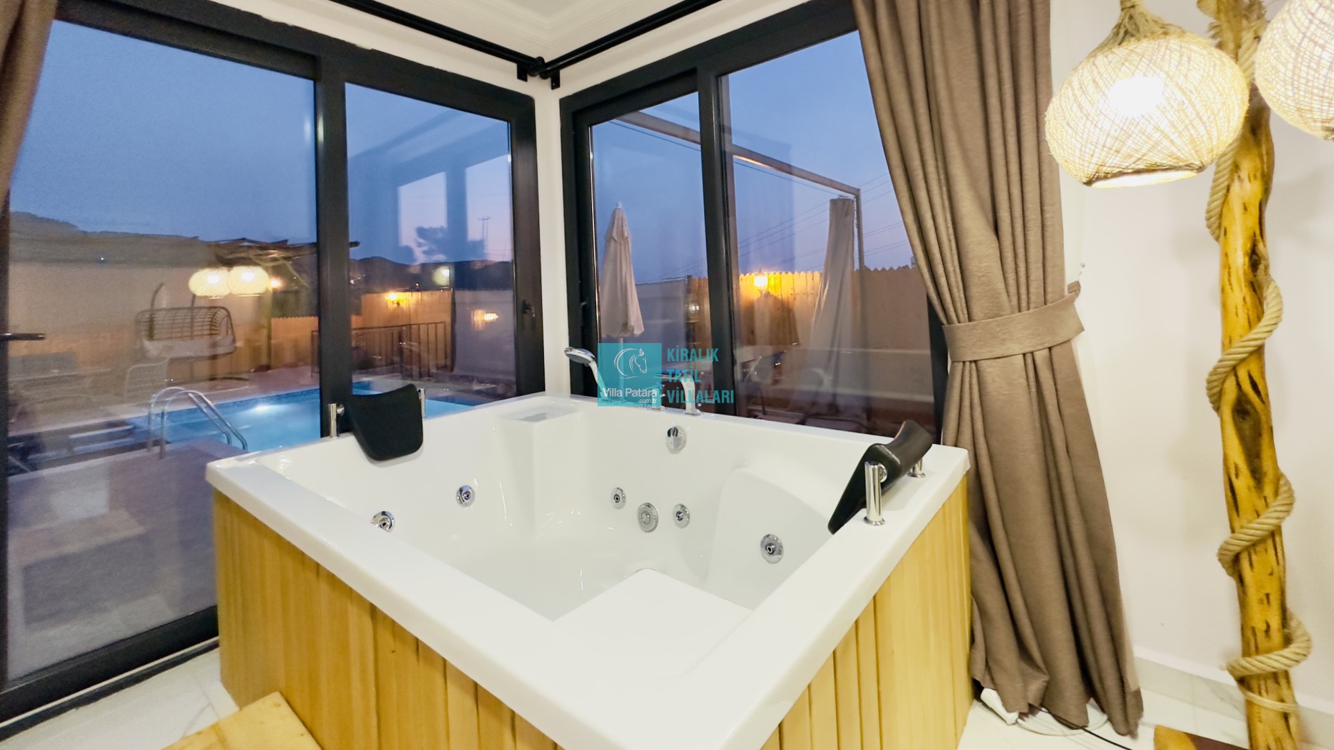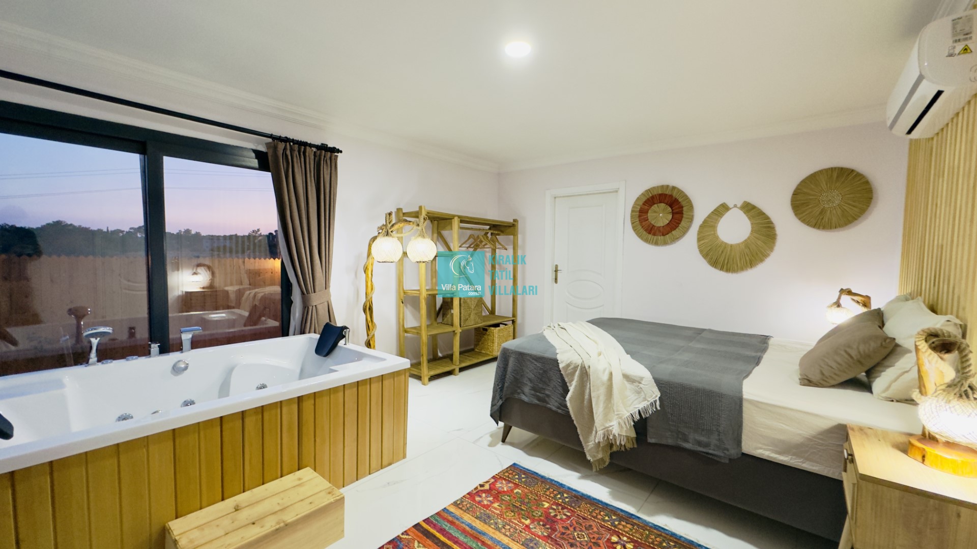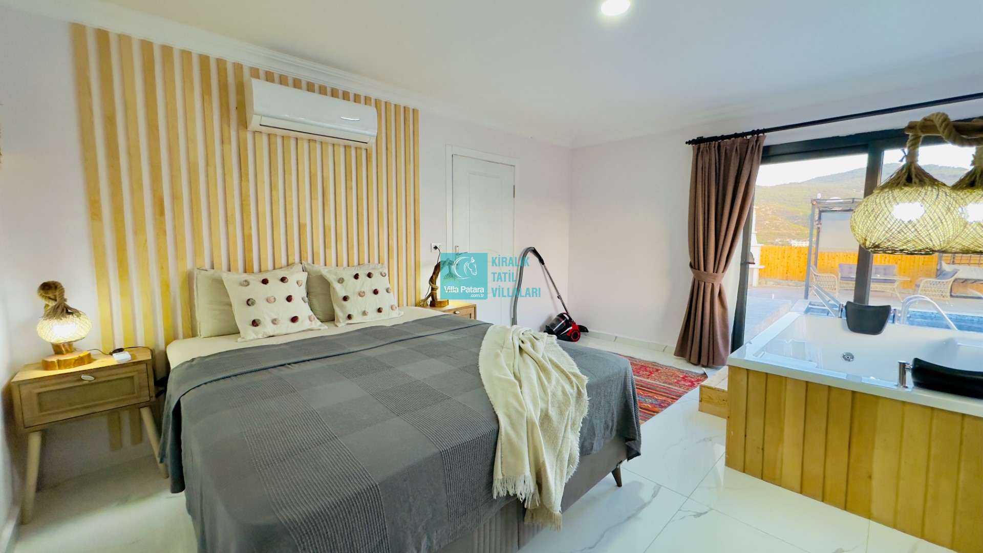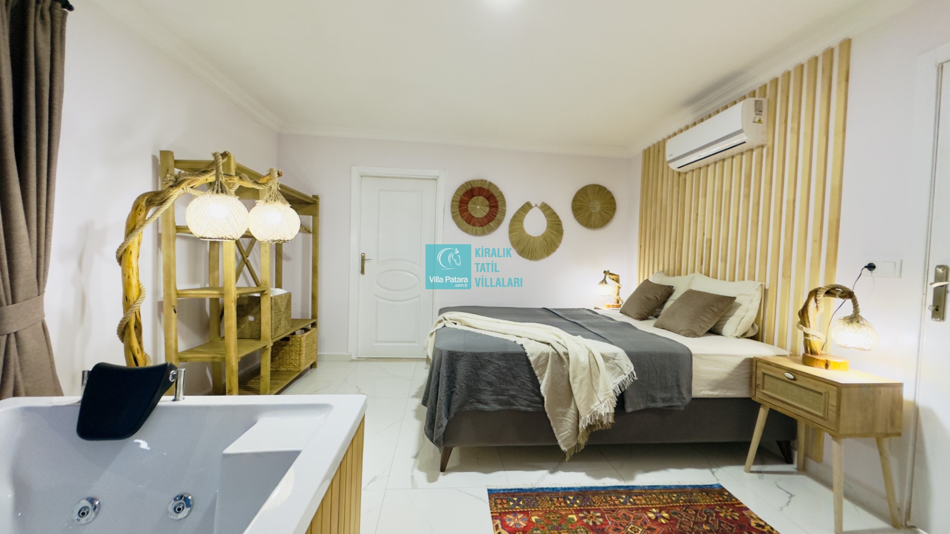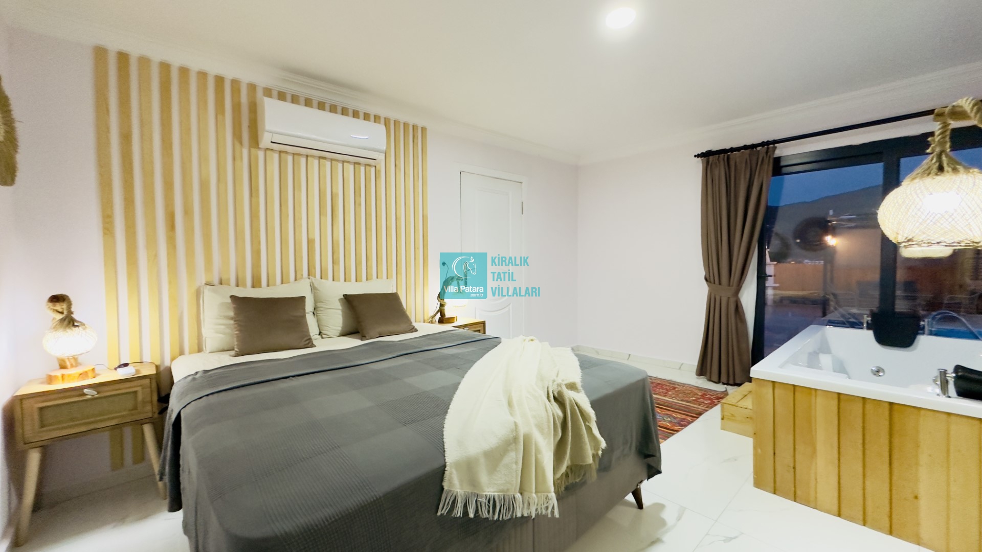 Antalya kaş patara mevkiinde yer alan villamız 2 yatak odalı, 4 kişilik konaklama kapasitesine sahiptir. Muhafazakar villalar ve balayı villaları kategorinde yer alan villamız. Villamız dünyaca ünlü patara plajına ve patara antik kentine çok yakın bir konumda yer almaktadır. Size özel bir bir havuz deneyimi sunan villamız patara merkeze yürüme mesafesinde yer almaktadır. Ayrica villamız ebeveyn yatak odasında siz misafirlerimizin bütün yılın yorgunluğunu atabilmesi için 2 kişilik jakuzi konforuda yer almaktadır.