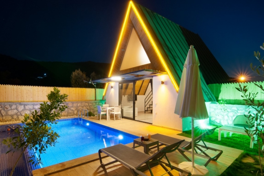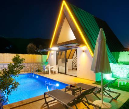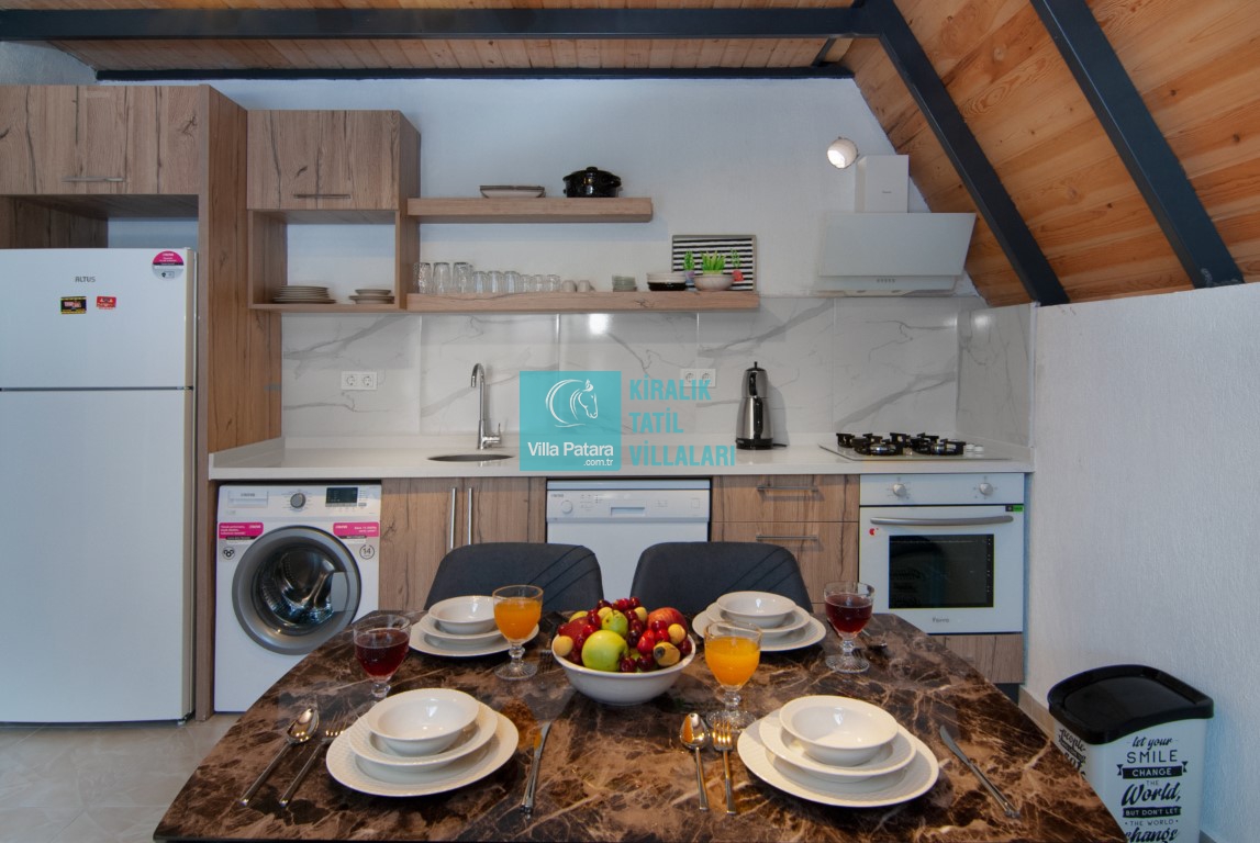 Villa Fırnaz 6, Kalkan'ın Yeşilköy bölgesinde yer alan şirin bir bungalov villamızdır. Villamız tek yatak odalı ve 2 kişilik kapasiteye sahip balayı villamızdır. Doğayla iç içe bir konuma sahip olan villamız da özenli lüks dekoru ve modern tasarımı sayesinde keyifli günler geçirecek ve siz değerli müşterilerimiz tatilinizin bitmesini hiç istemeyeceksiniz.Villamızın modern mutfağı, eksiksiz araç-gereçleri ve konforlu eşyaları sayesinde kendinizi evinizde gibi hissedebilecek ve rahat bir tatil geçirme imkanı bulabileceksiniz.
