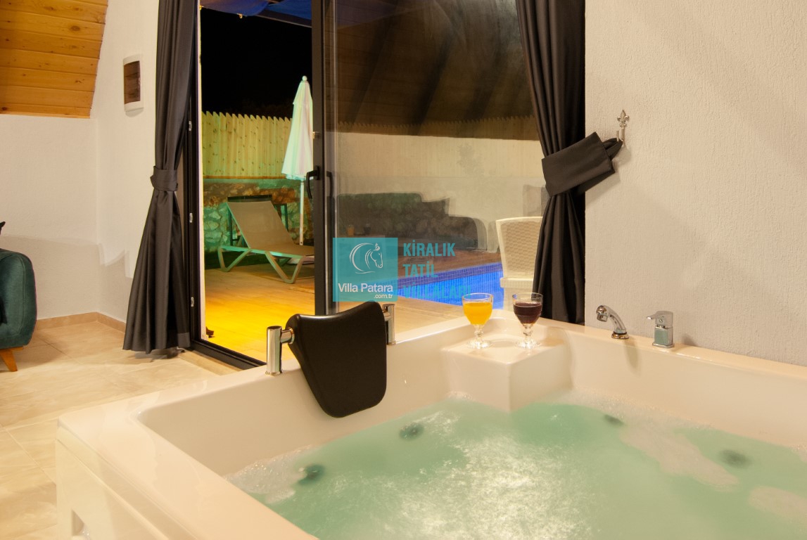 Villamız da bulunan jakuzi sayesinde ruhunuzu ve bedeninizi dinlendirme fırsatı yakalayabileeceksiniz. Villamızın özel yüzme havuzunun korunaklı bir şekilde tasarlanması özellikle balayı çiftlerimizin memnuniyeti için yarar sağlamaktadır.