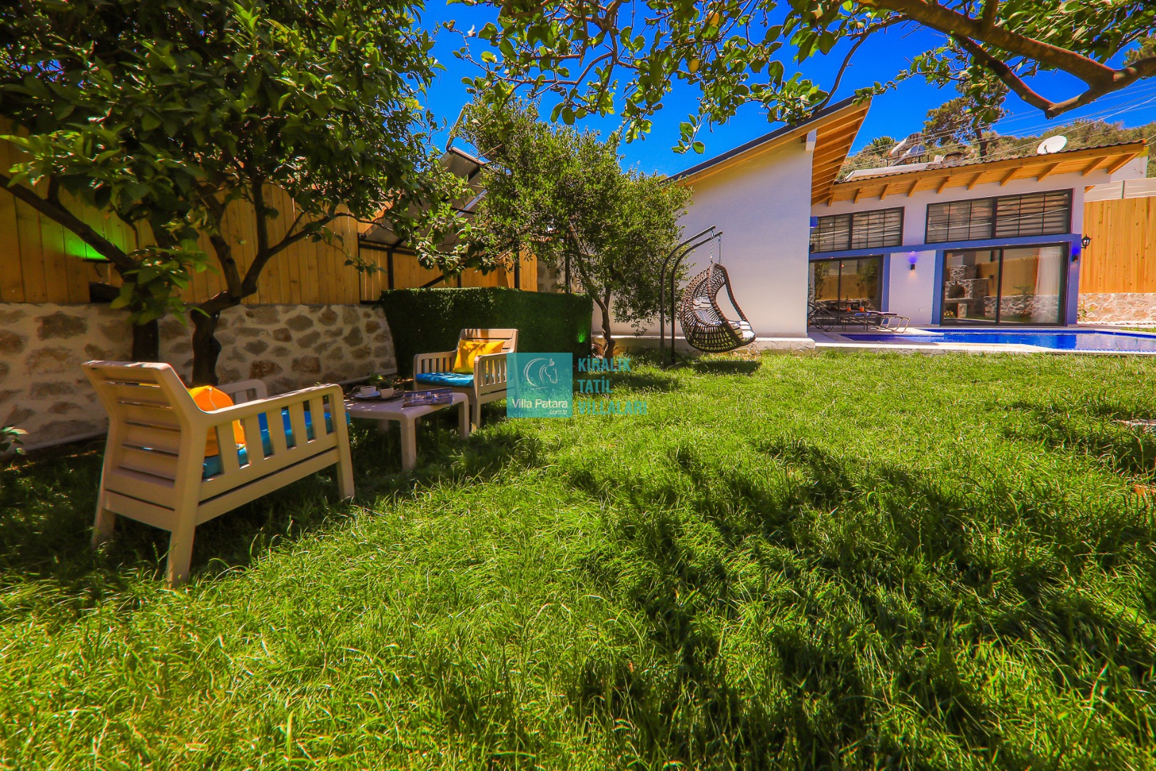 Bahçe içerisinde özel yüzme havuzu, şezlonglar, güneş şemsiyesi, salıncak, mangal bulunmaktadır.