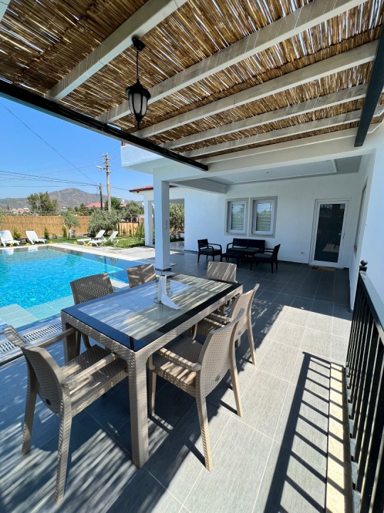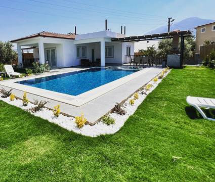 Fethiye merkez mevkiide bulunan villa, 2 yatak odasıyla 6 kişilik konaklama kapasitesi sunmaktadır. Çekirdek aileler ve balayı çiftleri tarafından tercih edilmektedir. Merkezi konumu sayesinde tercihlerin başında gelen villa, oldukça ferah ve geniş bahçe alanında kapasiteye uygun şezlong takımı, oturma grubu, salıncak ve barbekü alanına sahiptir. Havuz terasına açılan zevkle döşenmiş konforlu oturma odası ve tam donanımlı mutfağı, bir yatak odasında çift kişilik yatak ebeveyn banyosu ve jakuzi; ikinci yatak odasında da iki tek kişilik yatak bulunmaktadır.